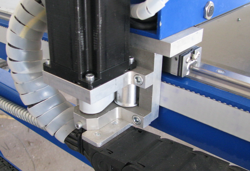Нормальная опробованная схема с ремнем: Работает как минимум по смене в день, полтора года. Плазма. Никакого люфта конечно нет. Проверка натяжения, подтяжка ремня и коррекция разрешения производилась два раза - в первый раз на длине почти 3 м подтянули около 1 мм, во второй раз - подтяжка не потребовалась.