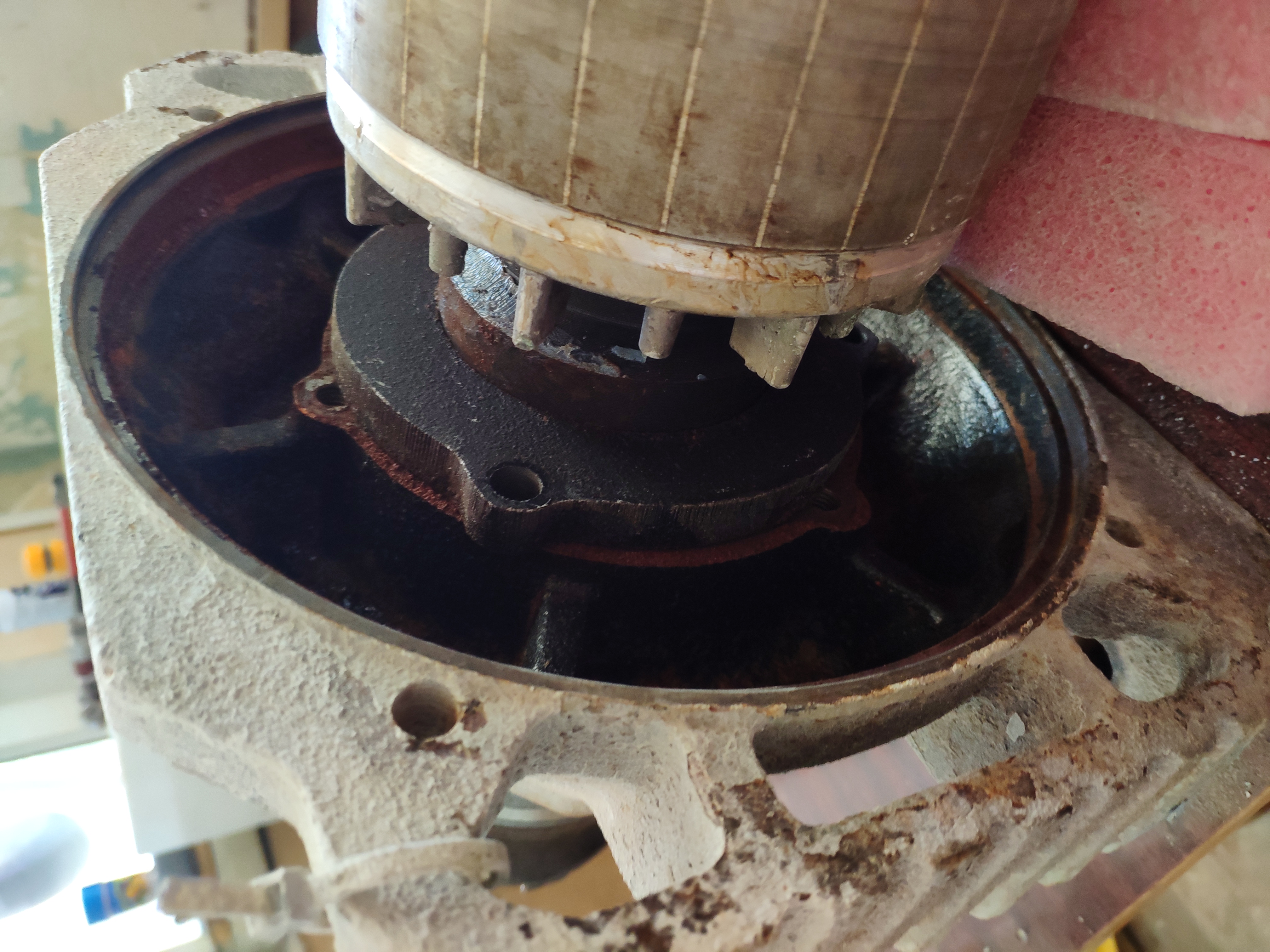 Купили камнерезный станок, через время начался шум от подшипника. Полез разбирать. Вытащил переднюю крышку с валом и ротором. Как теперь живу эту крышку снять для доступа к подшипнику? Буду благодарен за советы.
