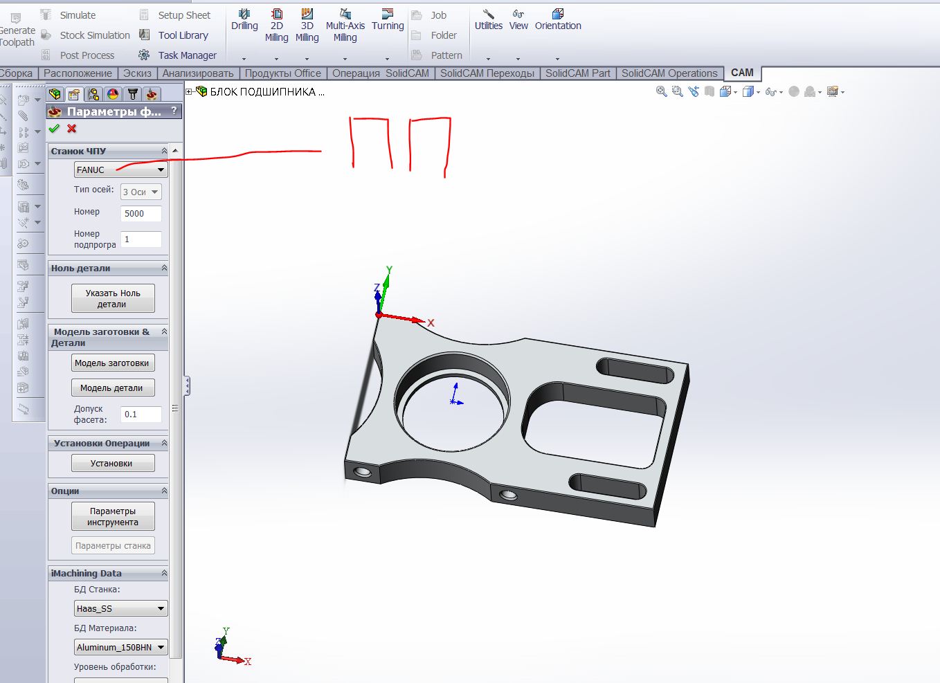 SolidWork + SolidCam + постпроцесор для Фанук