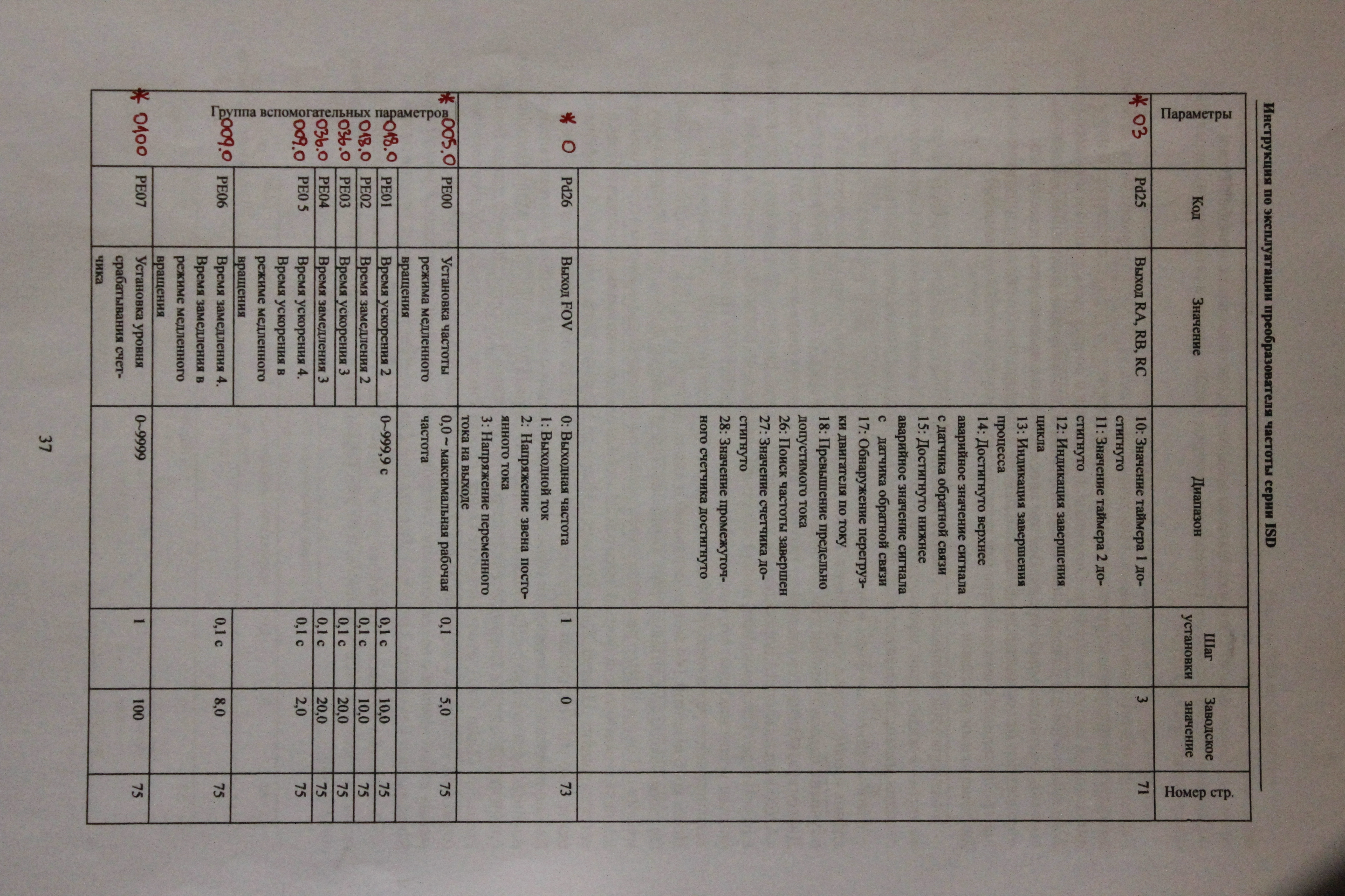 Прилагаю таблицу с настройками преобразователя частоты в более удобной форме.