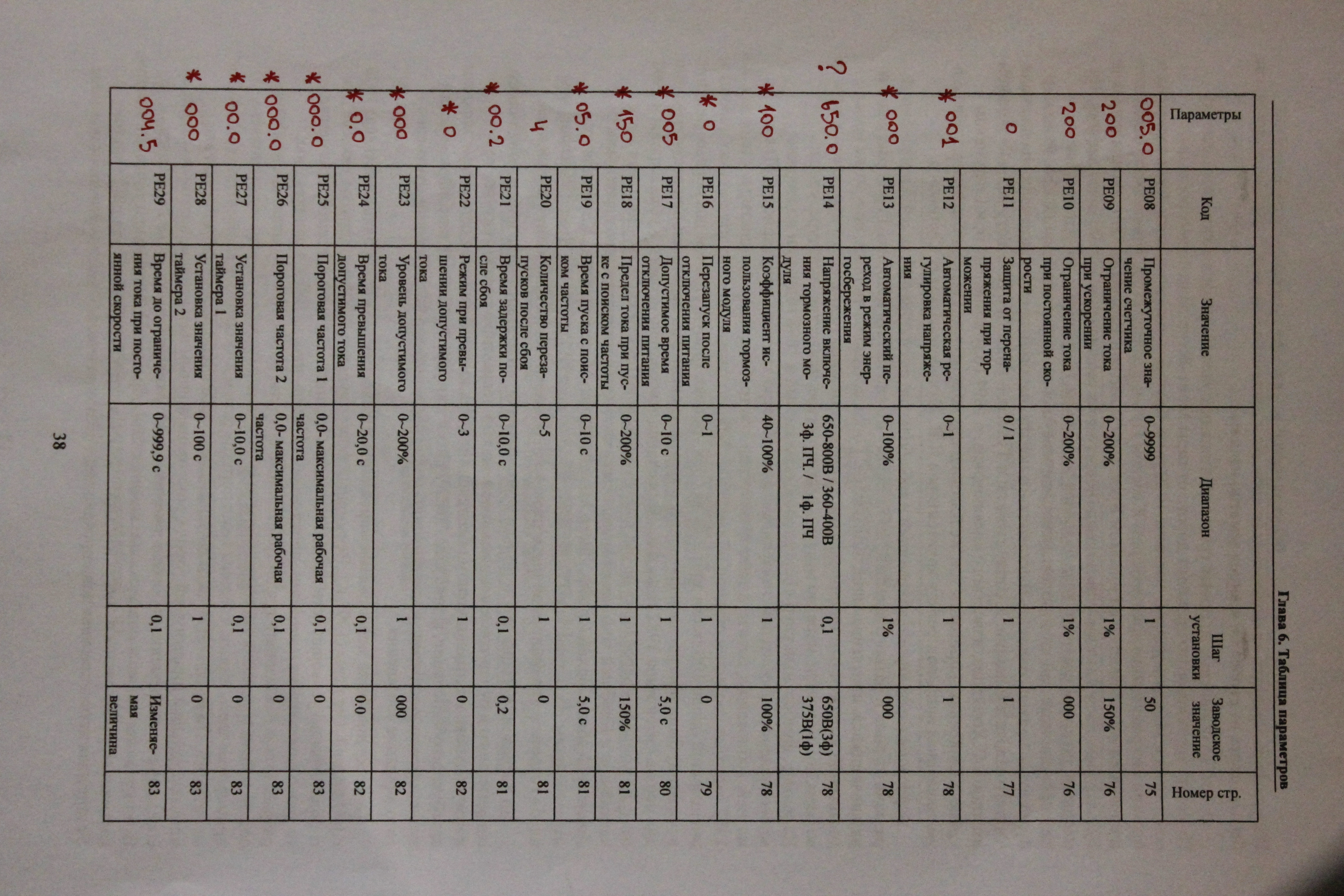 Сейчас задача в проверке корректности настроек частотника. Вот например вызывает сомнения корректность настроек частоты PC12, где вместо значения 24000 стоит 2400 обмин.