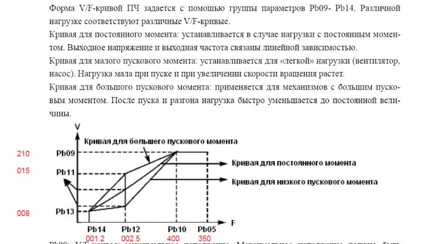 РВ09-РВ14 (V/F кривая, Значения напряжений для указаннойчастоты в пределах нормы?)