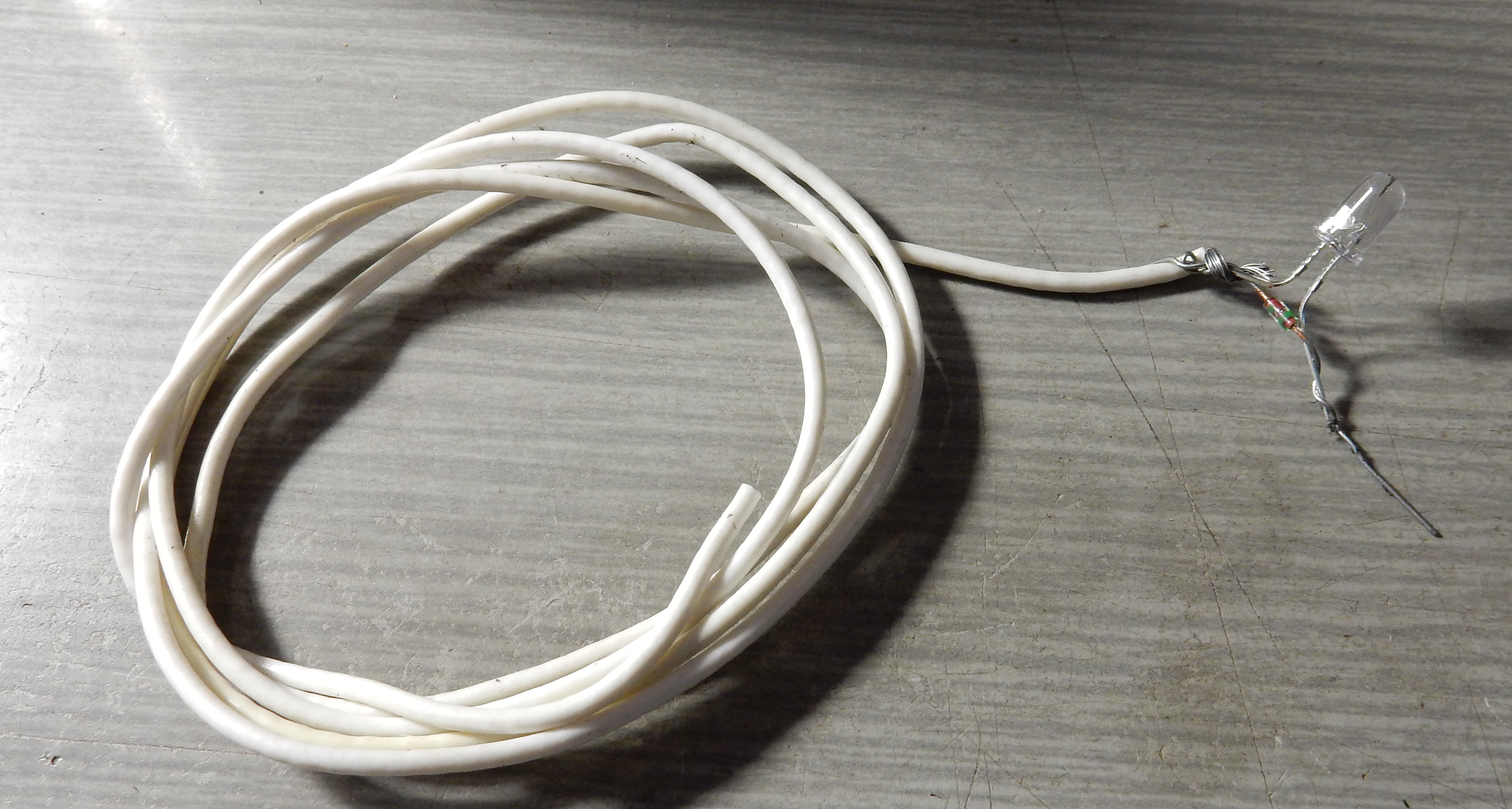 Собираем вот такую "схему" из светодиода, обычного диода, включенного встречно-параллельно и куска провода. Провод набрасываем на кабель от частотника к шпинделю, свободный конец провода висит в воздухе. Вторую ногу светодиода соединяем с корпусом станка.