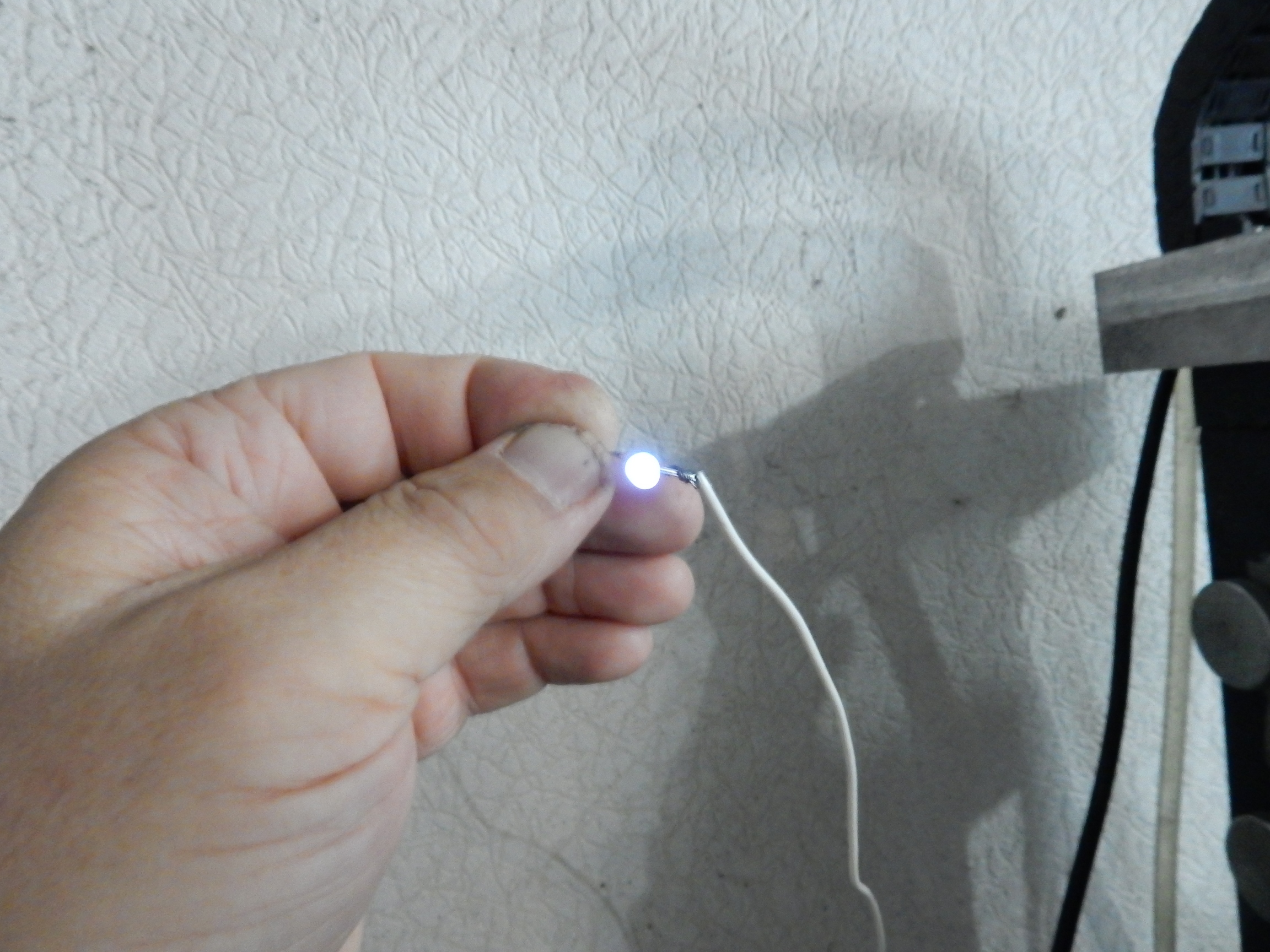 Даже если второй вывод светодиода просто держать в руке, свечение довольно яркое.