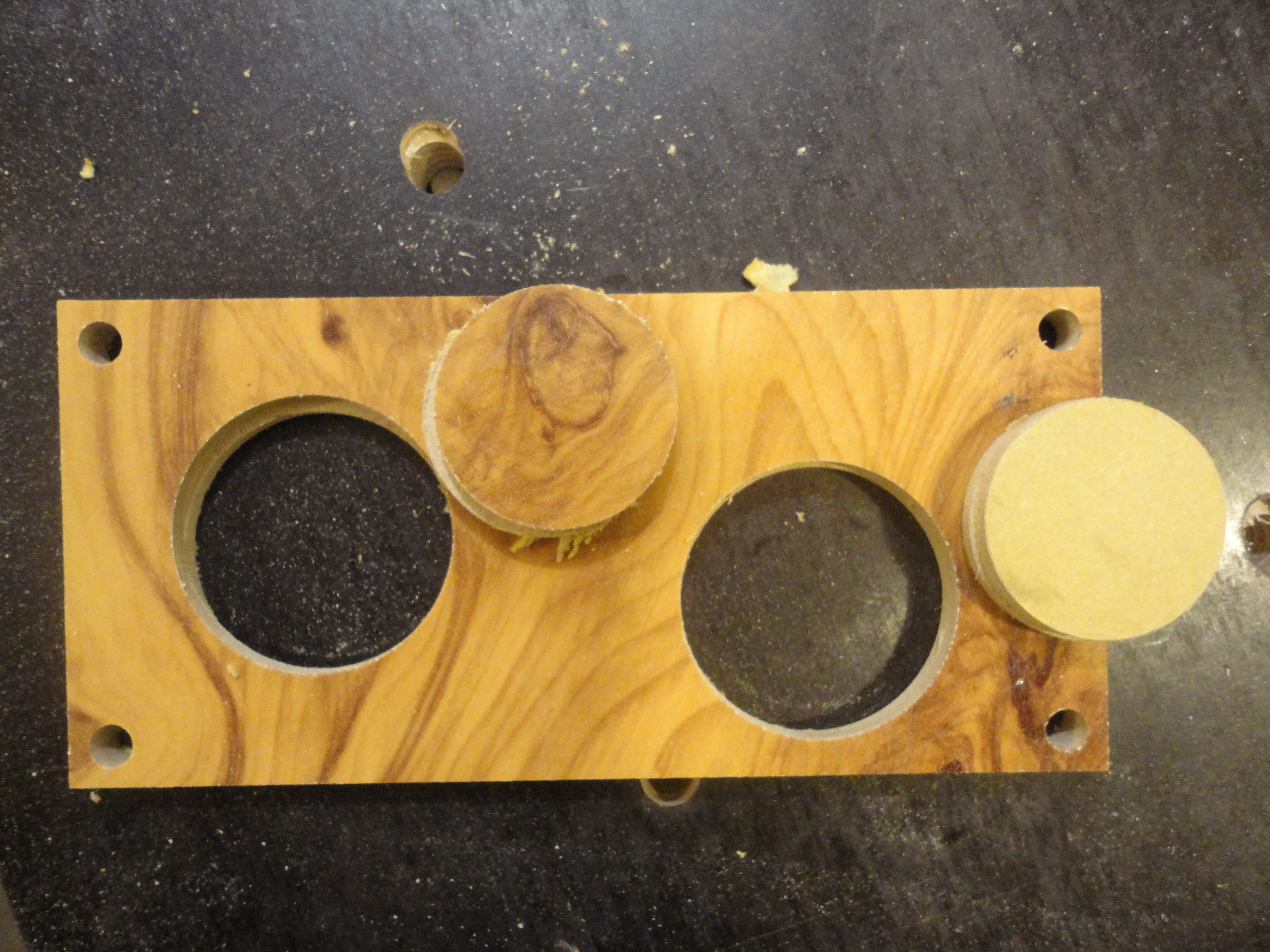 Сначала сделал заготовку под двухстороннюю работу. Заготовка представляла из себя размеры заготовки под будущую работу+ 2 см сверху и снизу. Сделал отдельную программу которая строго по центру на этих дополнительных 2 см сверху и снизу засверлила отверствия в заготовке и в фальшстоле. Дальше в эти отверствия забил алюминиевый пруток 6мм. По нему центровал при перевороте заготовки..
