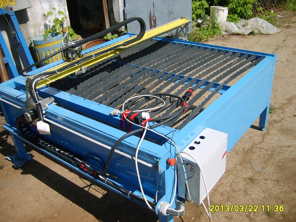 -устанавлена система авто поиска металла и (ТНС) система автоматического поддержания задангой высоты пламени. Если кто не знает что делает ТНС, постараюсь обьснить покороче, благодоря ей плазмоторон не касается железа. Например задал чтоб он держал высоту пламени всегда 3 мм от листа до плазмотрона и ТНС всегда держит это расстояние, вне зависимости лист у вас кривой с горбом и.т.д. В основном ТНС нужен при резке тонкого железа так как при резке его в основном гобит или при резке больших деталей.