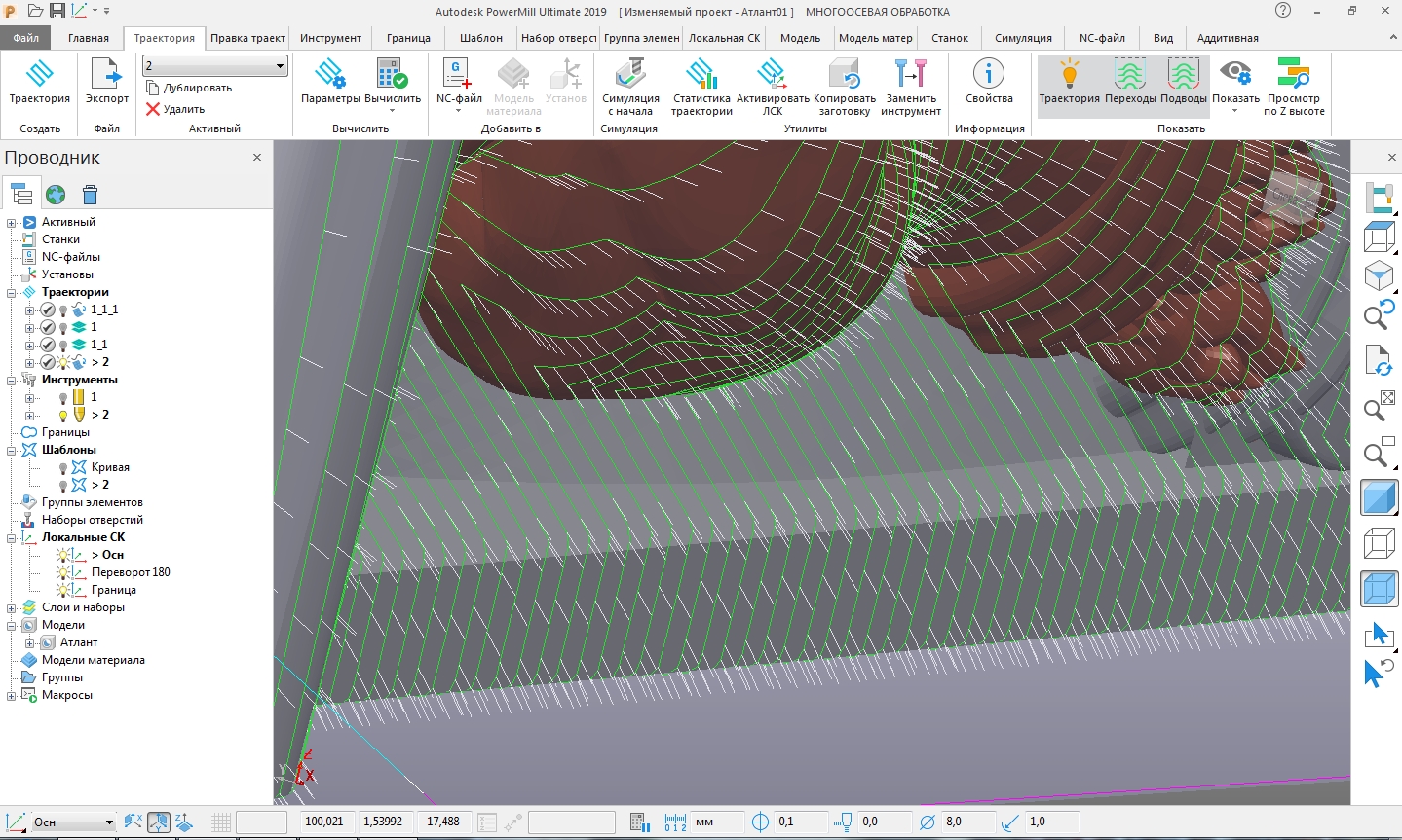 Re: PowerMILL, проекция кривой, фреза режет боком