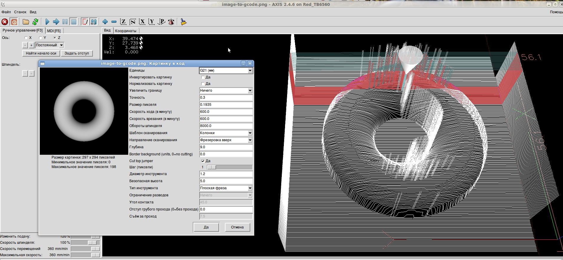 т.е. "фрезеровка вниз" - т.е. точка входа в заготовку находится в районе самой верхней точкки рисунка и от неё фреза начинает "убирать" материал - двигаясь к самой нижней(глубокой) точке.Up Milling: Start milling at low points, moving towards high points