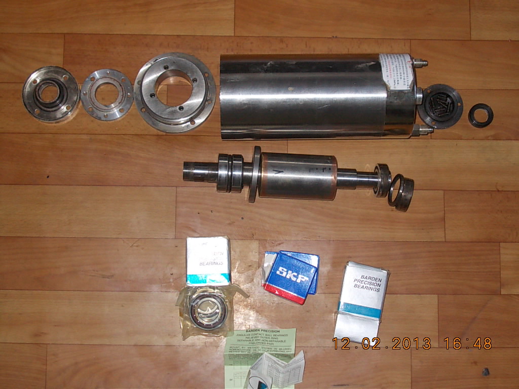 В подобных шпинделях стоят ДУПЛЕКСНЫЕ радиальноупорные подшипники серии 7000. Есть большая разница как устанавливать подшипники. В данном шпинделе стоят 7005 CD/P4 и 7004 CD/P4. Если покупать подшипники на замену нужно покупать не только по цифрам как это часто делается, но и по буквам. Например подшипник 7005А будет стоить баксов 10, а 7005 CD более 200. Буквы означают класс точности подшипников, угол, размер шариков и тд..