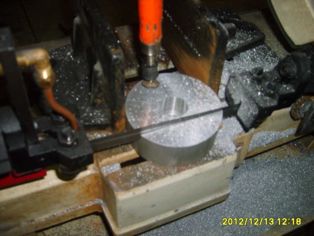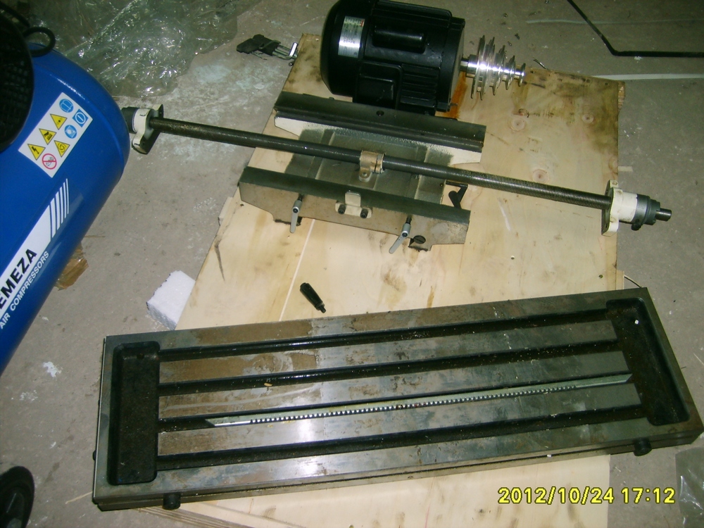 Крутящаяся гайка на фото выше, в сборе с пошипником. Центр его стальной корпус ал. Нужно к нему шкив ставить и движе. Все остальные детали что я точил из ал