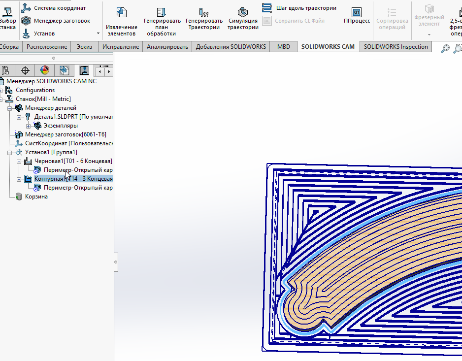 Добавил в сборку вторую деталь, заново сгенерировал план обработки, оставил только второй, обрезающий план, вроде все ок.