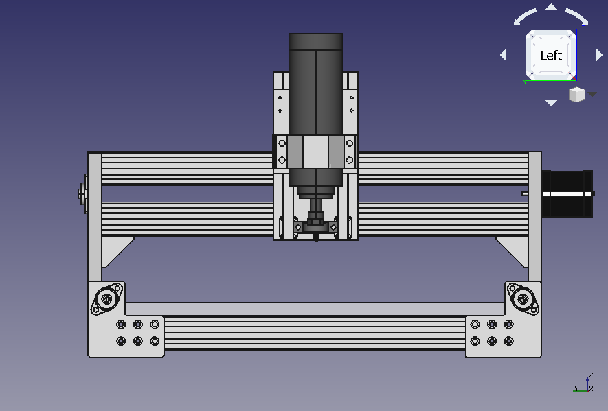 Рассматривал такой вариант. Было бы очень заманчиво убрать моторы Х в станину. Эта сторона основания все равно не рабочая. К сожалению, без существенного усложнения конструкции, я не смог спроектировать ременной привод по Х. По Y сильно не сэкономишь - там все равно кабель канал со стороны мотора. В целом согласен - ременной привод позволит еще больше сократить габариты. Подумаю, может еще удастся скомпоновать без усложнения.HeavyToshik писал(а):Хочешь компактности, рассмотри ременной привод х,у.