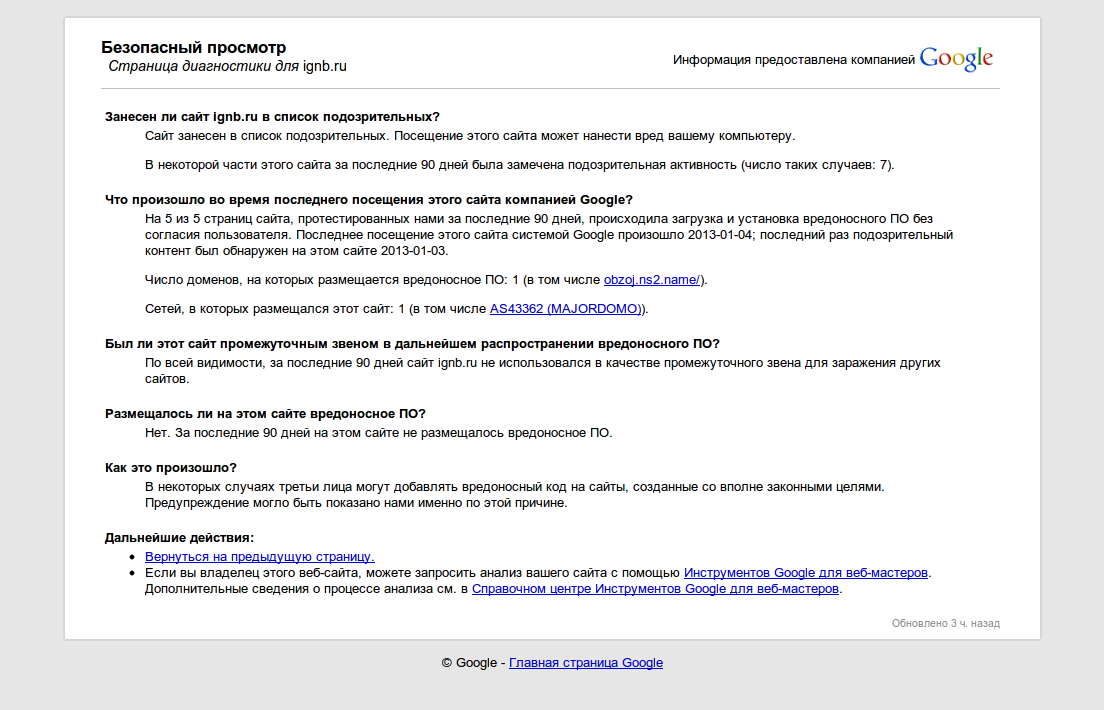 Про сайт ignb.ru google пишет следующее: