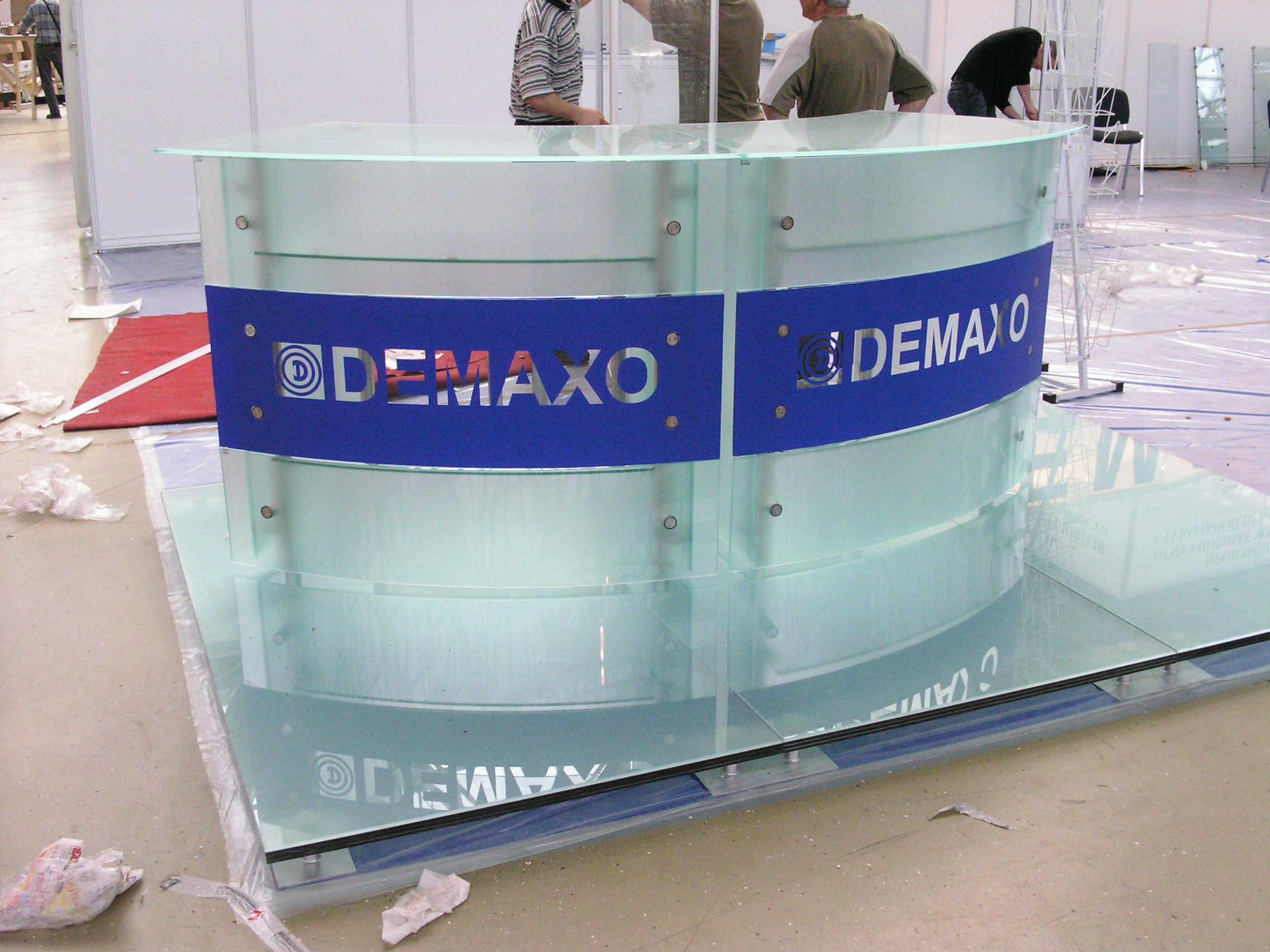 В 12 ночи начали, а в 4 утра уже было все готово. Подиум, ламинат, подсветка подиума и оборудования, реклама, оборудование, мебель и т.п.