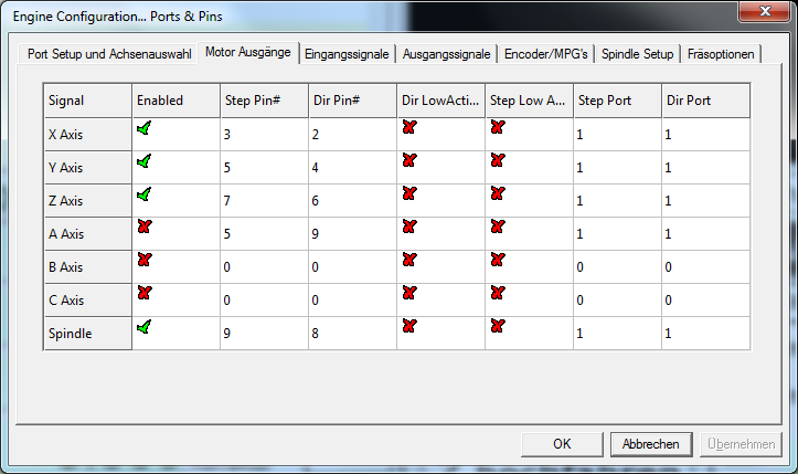 А что в Мак 3 выстовлять?,поставил галачку для шпинделя,порты прописал,моторы настртоил,может по