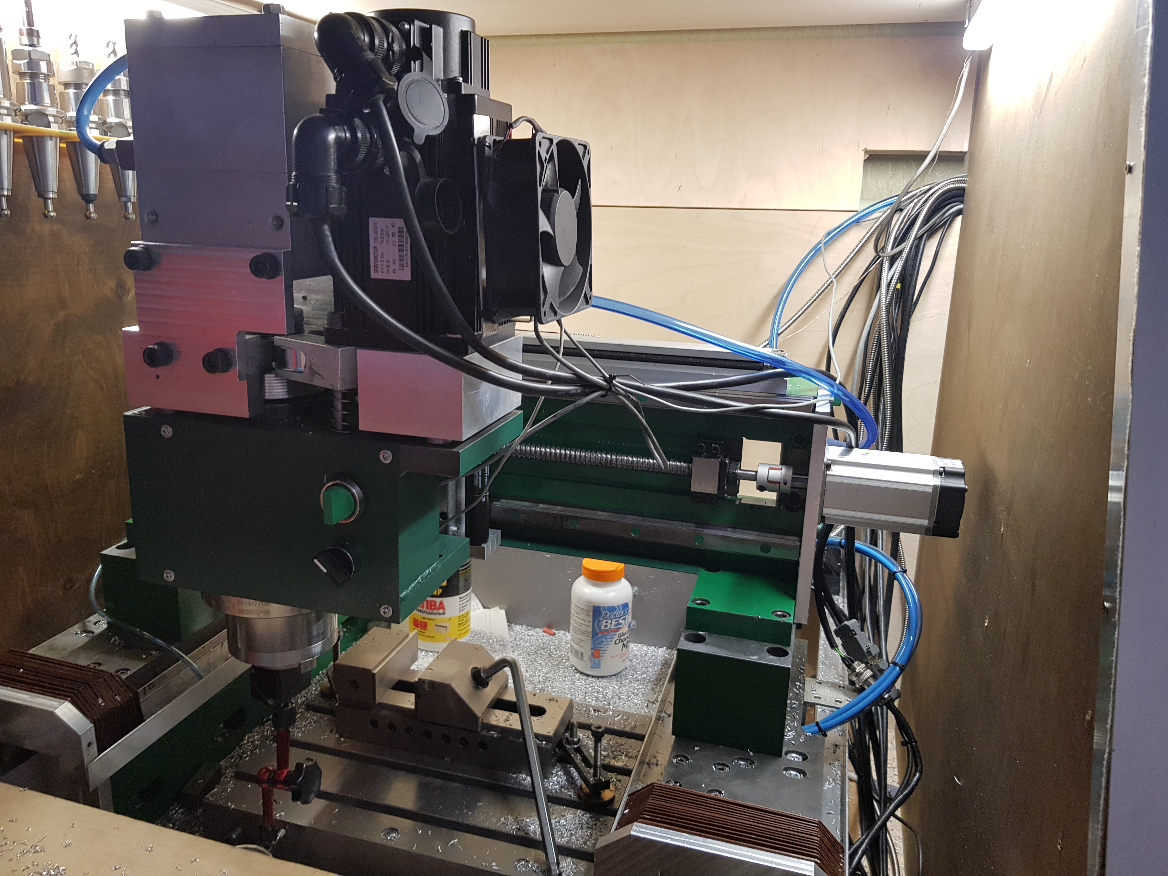 Продам немного не доделанный станок чпу с рабочим полем X300мм Y300мм Z120мм просвет под порталом от стола 240мм. Станок на основе из чугунной поверочной плиты. На всех осях установлены сервы 400w minas a5 и оптические линейки с разрешение 0.005ми. Шпиндель ременного привода с автосменой bt30 (покупал у mgg с форума на 5 подшипниках и на 6000rpm) с двойным пневмоцилиндром. На приводе шпинделя установлена китайская серва 1.8kw 3000rpm через ремень с двойными шкивами 1:2 или 2:1 можно менять обороты на инструменте от 1500 на маленьком шкиве до 6000 на большом. Контроллер управление mycnc et7. Рельсы на осях X и Y 20 на Z 15 hiwin, швп по всем осям tbi 1605 с7 с двойной гайкой. Есть комплект к станку защиты гармошка на все оси. Я не успел их установить. Цель продажи нужны деньги на новый проект с более серьёзными размерами. Общий вес станка 410кг разбирается на 3 части для транспортировки. Цена станка 420000р. Цену считаю обоснованной по цене комплектующих. Продам комплект сервы panasonic minas a5 из за ненадобностью на 750w. Работает по step/dir все разъёмы в комплекте. Есть шкив совсем новый htd 5m 80 зубьев фирменный стальной с посадочным диаметром 19мм на шпонку и фиксацией типа цанга. Цена за сервокомплект 18000р. Цена за шкив 3200р. Оплата на карту сбера. Отправлю за счет покупателя.