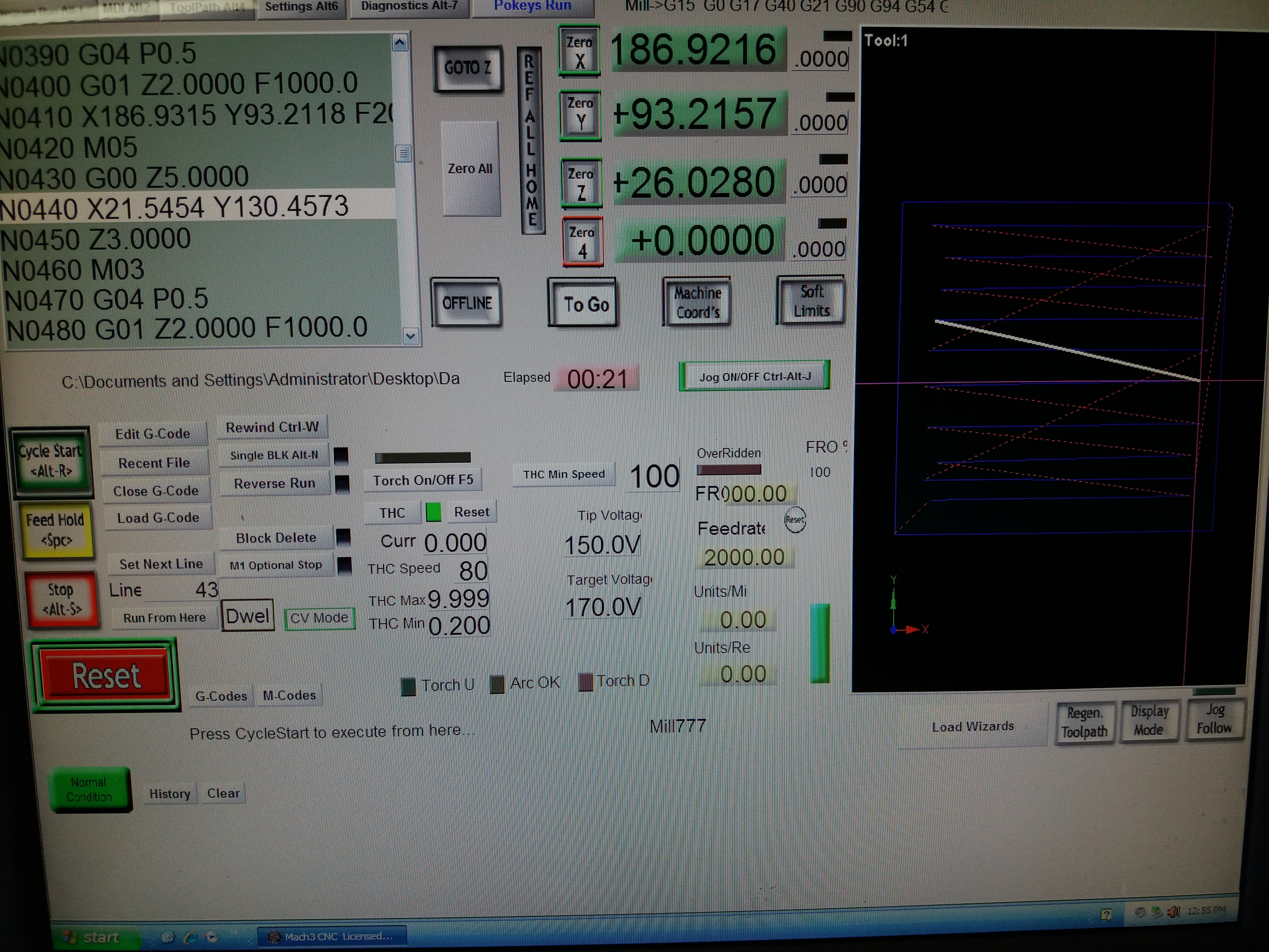 Мысль...а может быть неполучаеться потому что у меня постпроцессор -Mach3 plasma...а не Mach3 plasma with THC?