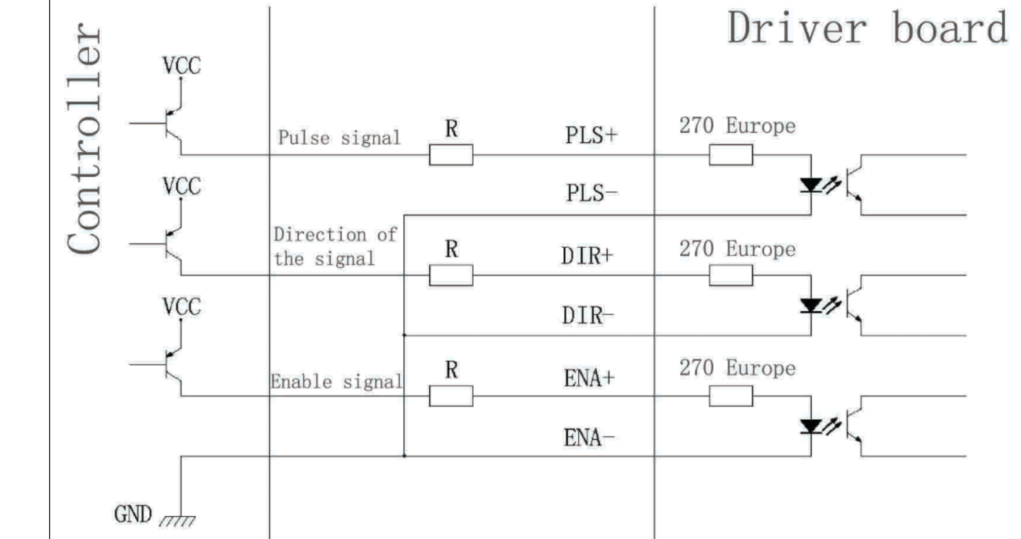 С синей платы *+D на DIR. *+S на PUL. *+E на ENA. *N и всё минусы общий провод (минус платы)