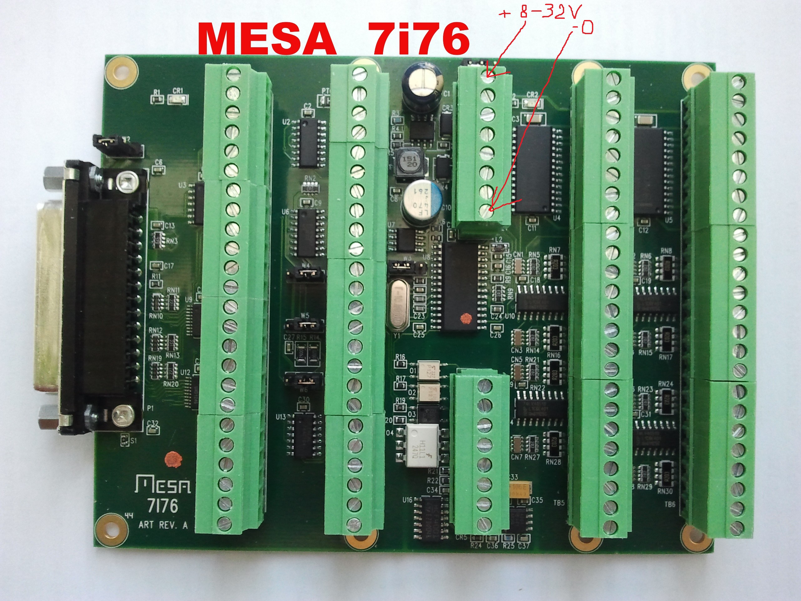 Видна только 6i25 (как 5i25) в её епроме 7i76x2.bit с завода, заливал 7i76_7i74.bit результат тот же. Кабель, 25 пин, используется из китового набора - родной. Питание на 7i76 подал 12вольт на ТВ1, перемычки W1 и W2 в левом положении, горит один желтый светодиод (питание +5в идет с компа).