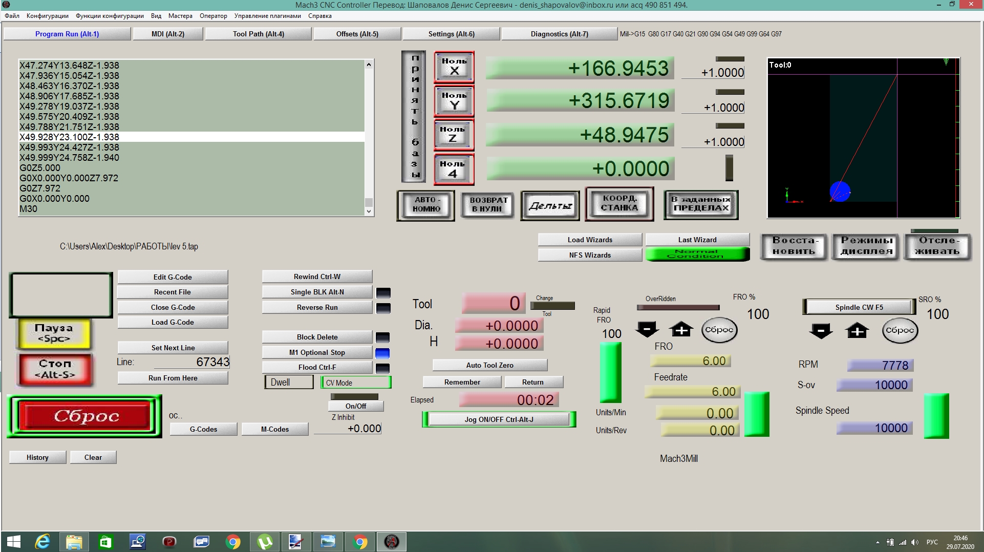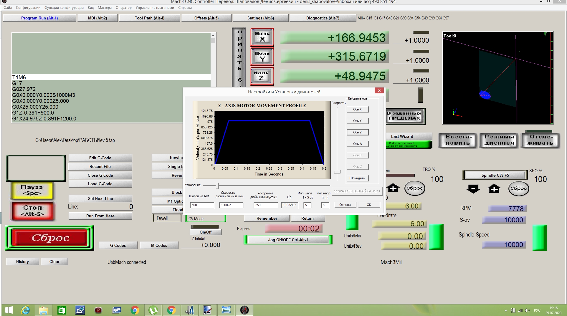 Для начала перестать ломать фрезы и заставить шптндель ездить вверх-вниз по воздуху.