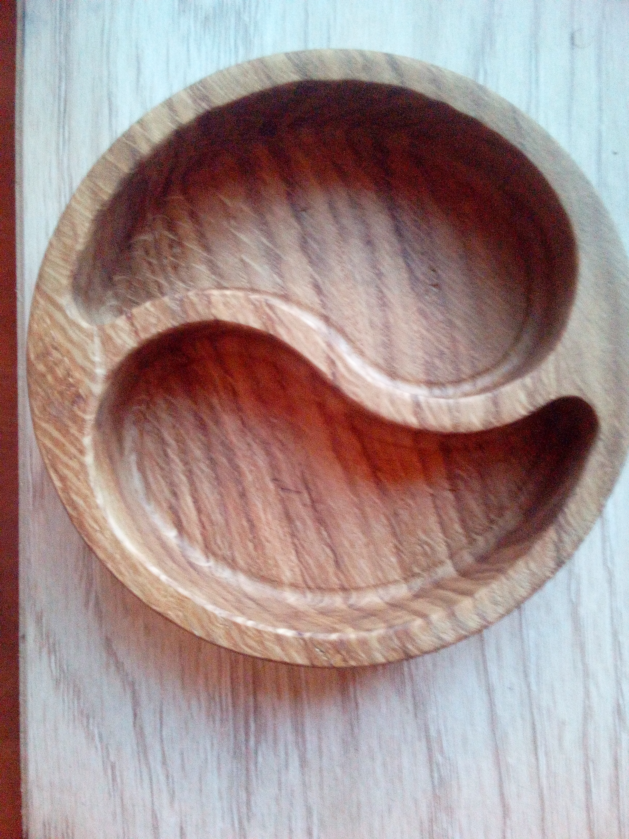 Деталюшку ошкурил, притупил шкуркой острые углы, покрыл маслом. Материал дуб. Диаметр -130мм, высота 24 мм, глубина 18 мм.