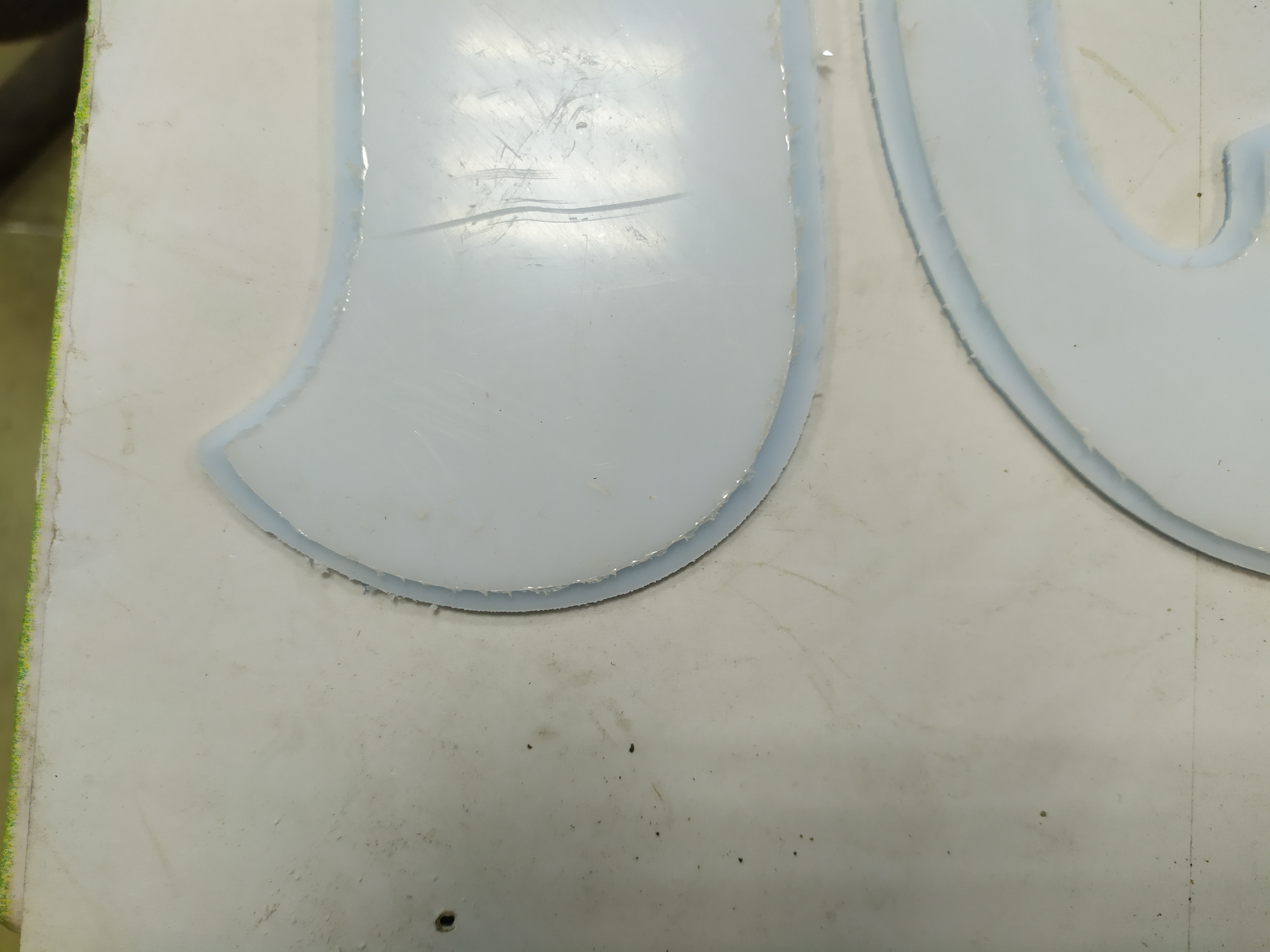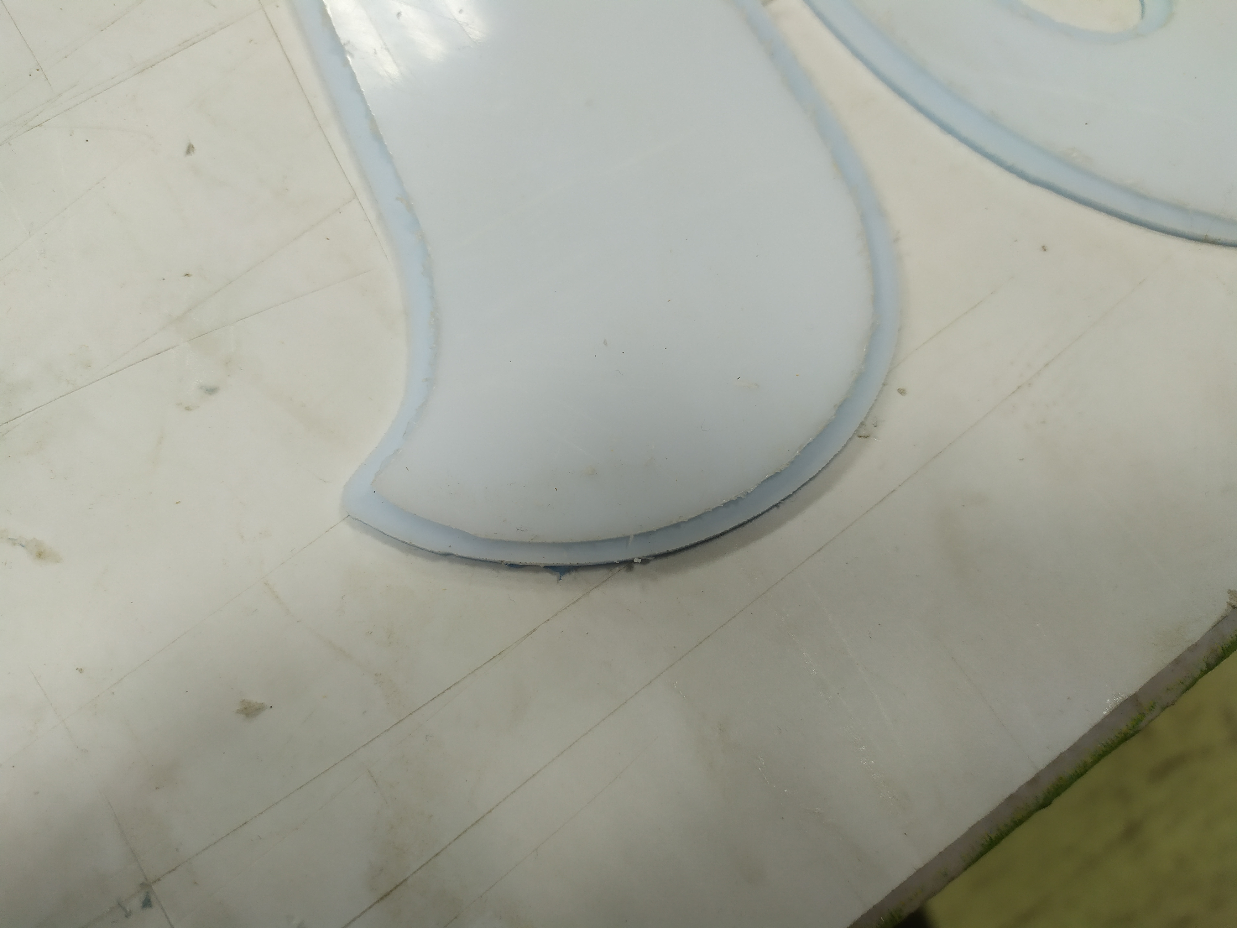 Есть еще другая проблема. Станок при вырезании кривой линии оставляет полосу. Т. Е. Вырезаю букву. Скажем букву О для рекламной вывески. На это лицо вырезаются борта из 3мм пластика. И чтобы борт четко встал по краям буквы Вырезается раз по краю. Глубиной 1.5мм. Вырезается лицо из акрилла 3 мм. Сначала фреза проходит внутри вектора на глубину 1.5 мм. Потом снаружи вектора отрезая саму букву. Фреза 3 мм. И вот между двумя этими проходами остаётся буртик. Порой даже 1мм. И не по всему периметру, а в некоторых местах. В основном проявляется на кривых линиях. Видео ступеньку. Фреза идет идет и бац станок сам дергается и раз получается раз не 3 мм, а