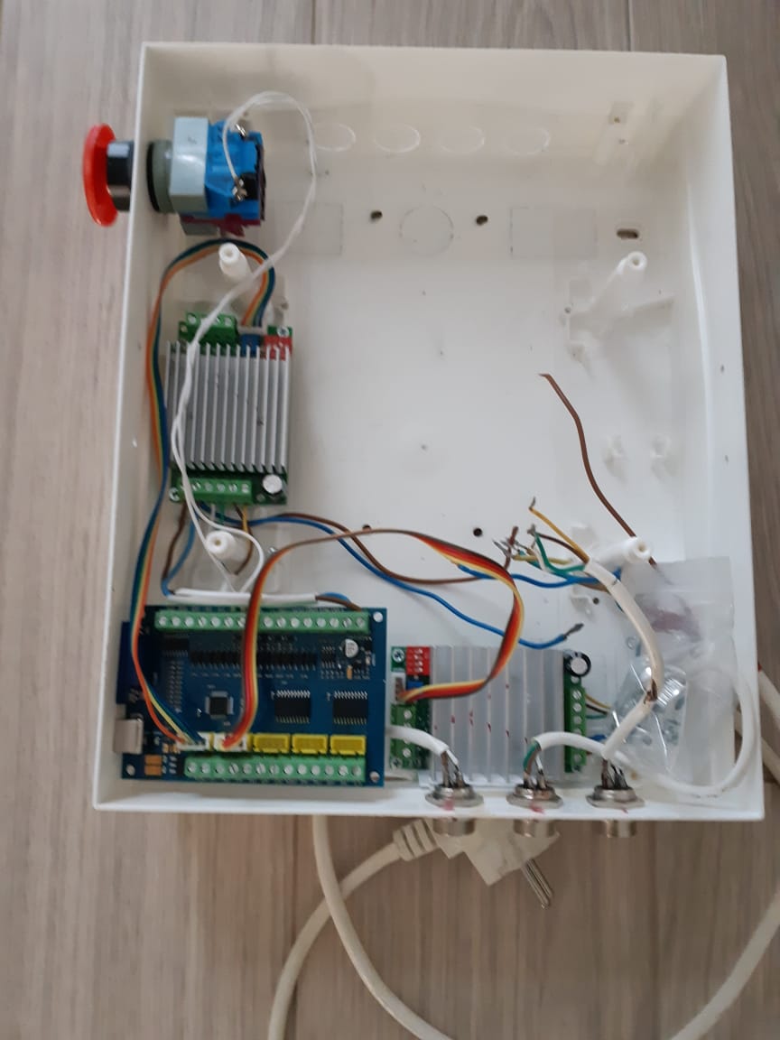 Продам купленный здесь на форуме станок. Габариты 60х40 см, но поле намного меньше, около 20х30. Точно не помню. Вернее здесь брал станину с винтами, остальное в Китае заказывал. Покупал давно, но на станке почти не работал, в основном настраивал. Так до конца и не настроил. Не моё. Нет концевиков, гофр для кабеля и ещё мелочей, которых на фото НЕ видно. Хотя станок так то работает, программу отрабатывает. Электрику бы в корпус собрать не мешало. Ещё неплохо было бы установить нормально стол и какую то поперечную балку на ось Y, портал собран на одних валах. Это чего нет.