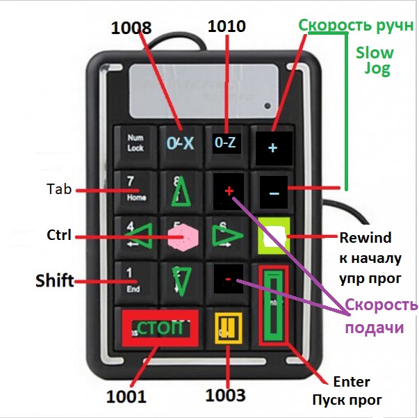 С этой конструкции я вытащу платку , размещу на станке и подпаяю свои кнопки. Предварительно в настройках мач3 выставил коды нужные . Это перемещение ручное по осям, пуск, Стоп, Пауза, 0-Х, 0-Z. С помощю програмки Key Tweak переназначил клавиши Tab Ctrl Shift Rewind. Осталось 4 клавиши на которые я хочу поставить ручное перемещение по осям ( больше меньше) ну и управление подачей (больше меньше) Вот только не знаю как это сделать. В скринсете для фрезера эти кнопки работают. (+ -) и F10 F11.