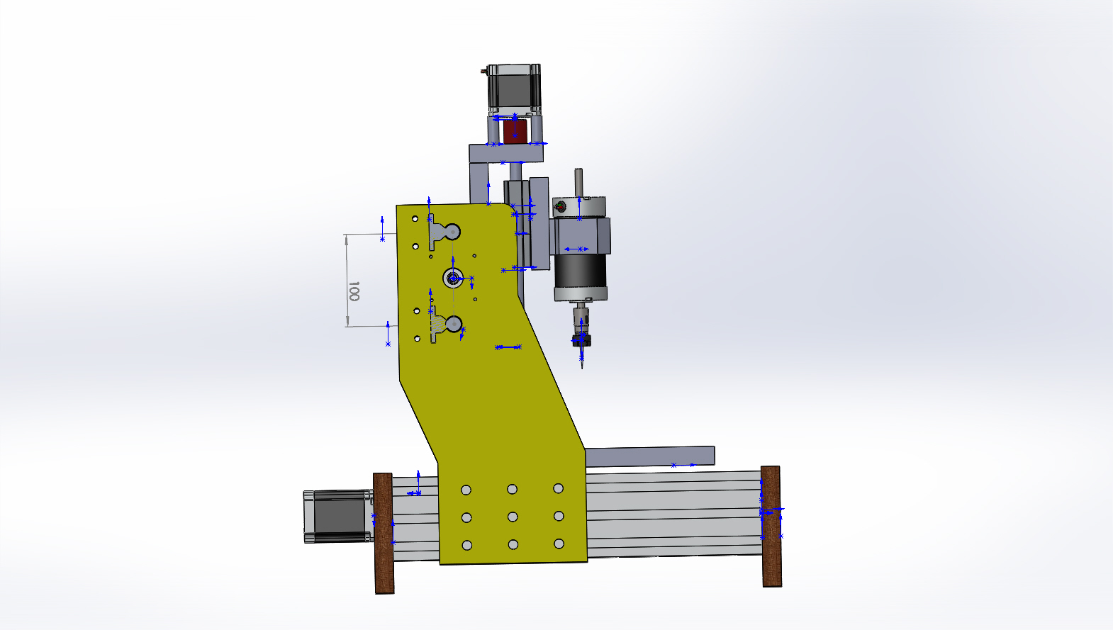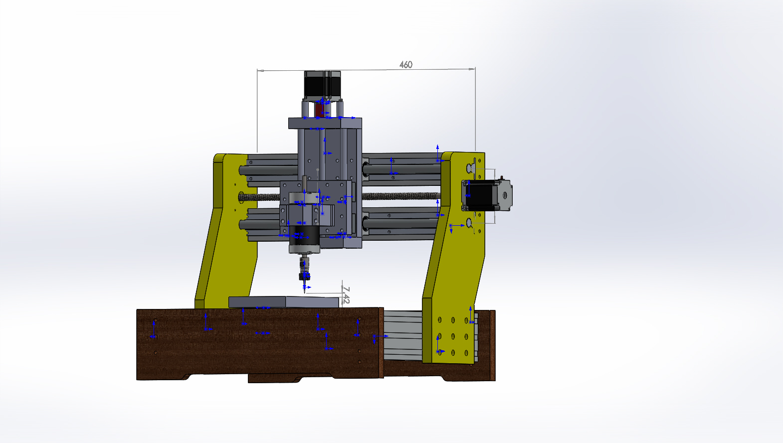 Проект немного не дорисован, нет оси Y со столом, но там и вопросов особенно нет, буду делать как на CNC3018. Уровень стола БЕЗ ЖЕРТВЕННИКА обозначен горизонтальной плитой на рисунке.
