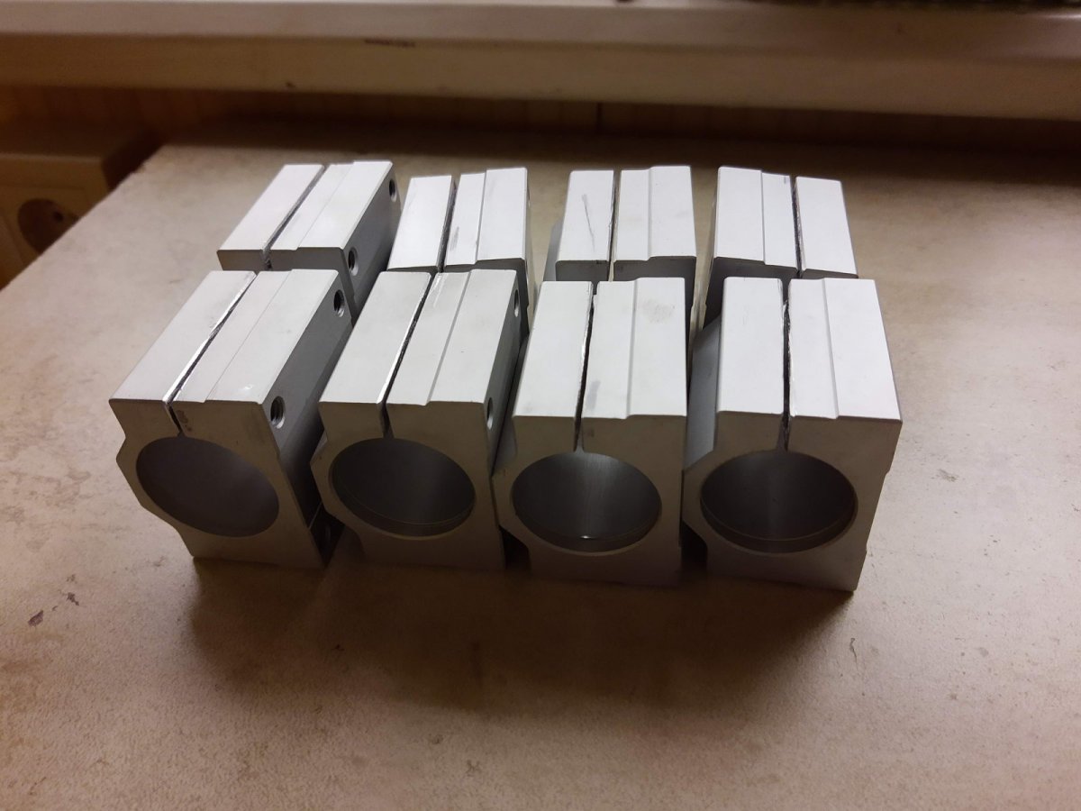 Вторая проблема - гуляют высоты опор. Клинит при затяжке пары опор на одной направляющей. Думаю, после НГ перебрать и отсортировать по высотам пары опор. Возможно получится подобрать комплектные, так как в первый раз собирал не думая в разнобой. Либо буду менять на длинные спаренные опоры типа этих https://cnc.prom.ua/p21755787-zakrytyj- ... ipnik.html