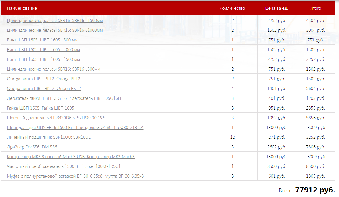 Привет всем. Почитал еще форум и решил накидать комплектухи для станка. Планировал делать сам из фанеры, размер по направляющим 1000х1500мм. Так станок то вообще не бюджетный получается...