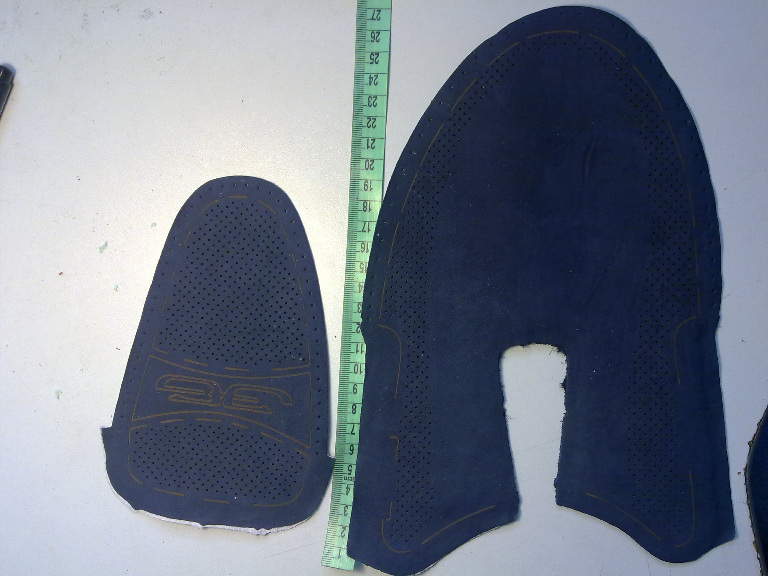 Кожаные детали склеены из двух слоев кожи общей толщиной 2-3 мм