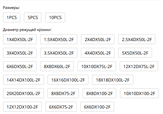 У всех продавцов такая таблица выбора, но на ней только показан диаметр фрезы, диаметр хвостовика и длина хвостовика.