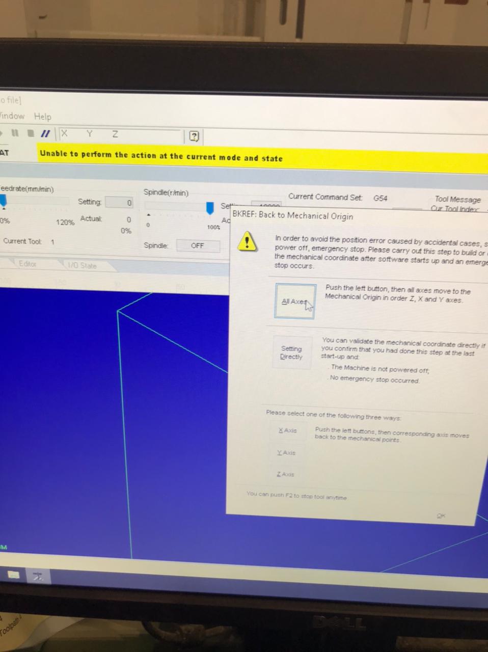 ОШИБКА unable tu perform the action at the current mode and state
