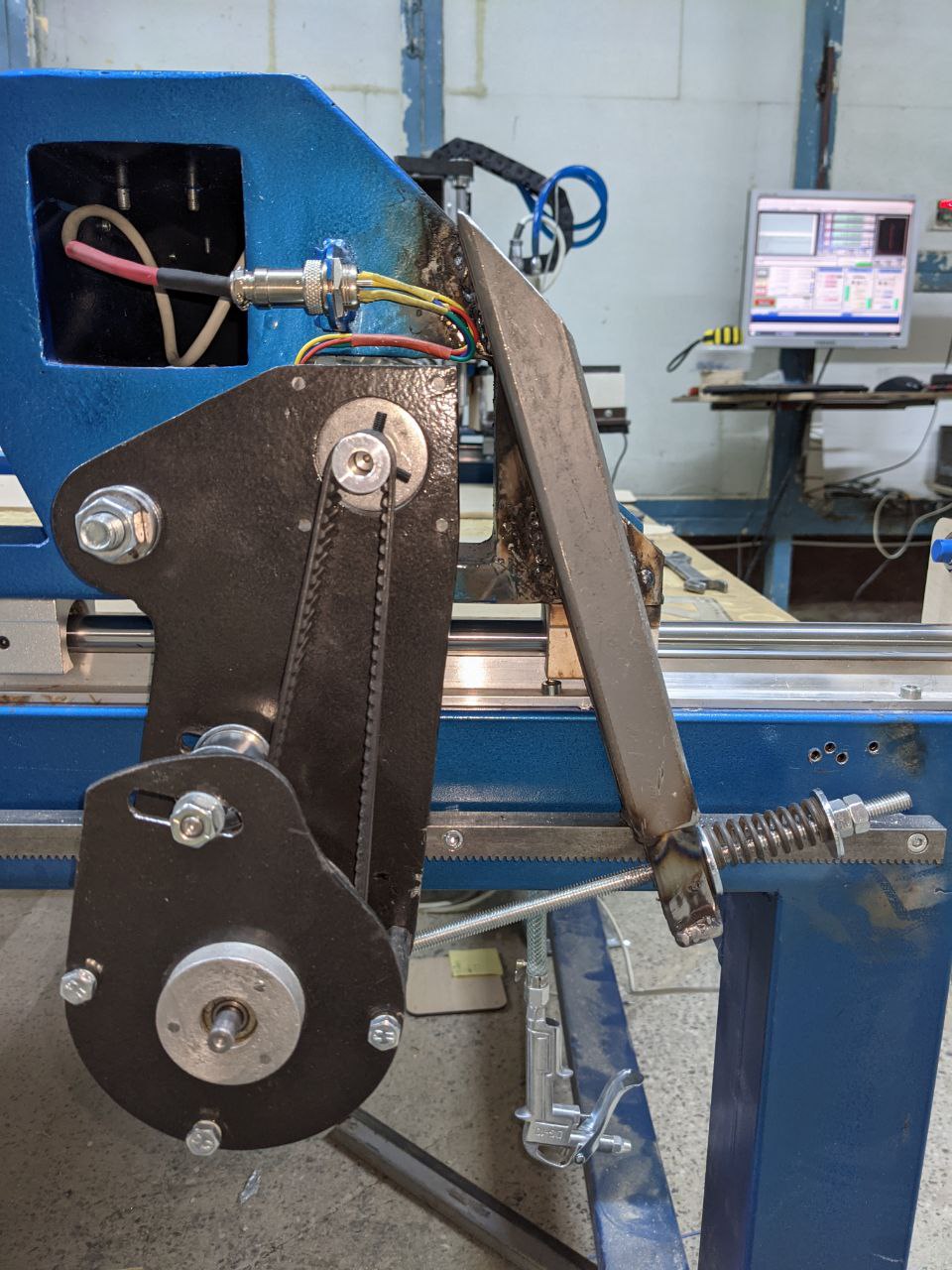 Самодельный, 1х2м, реечный привод, редуктора ременные (фото прикрепил) по всем осям, нема23*50, драйвера dm556, заземлен, провода экранированы, управление Mach3, плата LPT