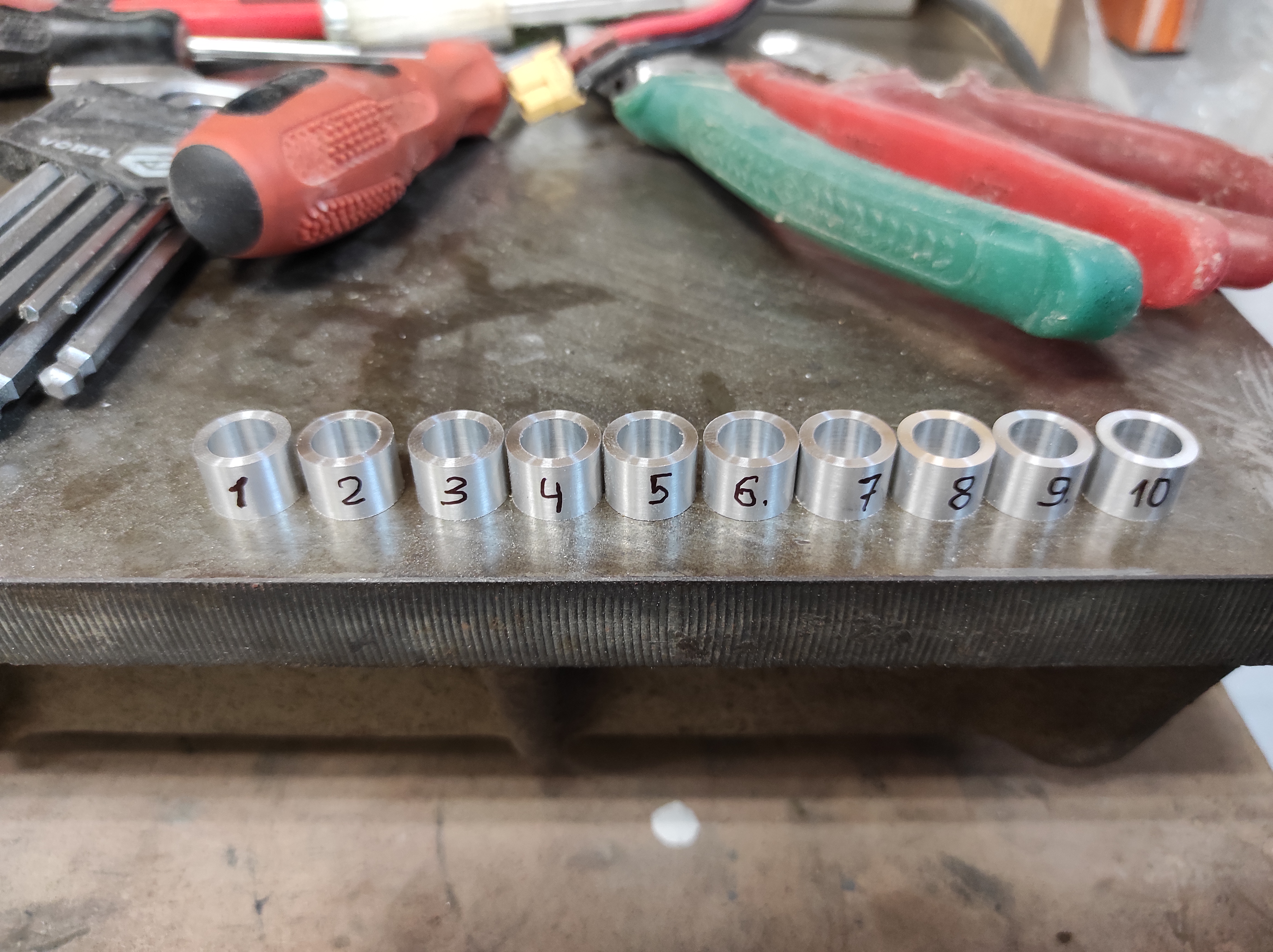 По наружи разброс в пределах сотки. По нутрянке, что удивительно, первые 4 детали были в 0-х, 5,6 в минус 2 микрона каждая относительно предыдущей, остальные 4 опять в нулях, относительно 6-й.