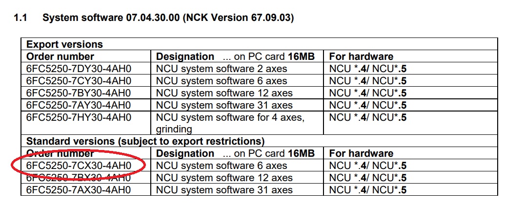 Во всех документах и мануалах Сименс стандартные версии ПО имеют индекс X, например у меня 6FC5250-7CX30-4AH0