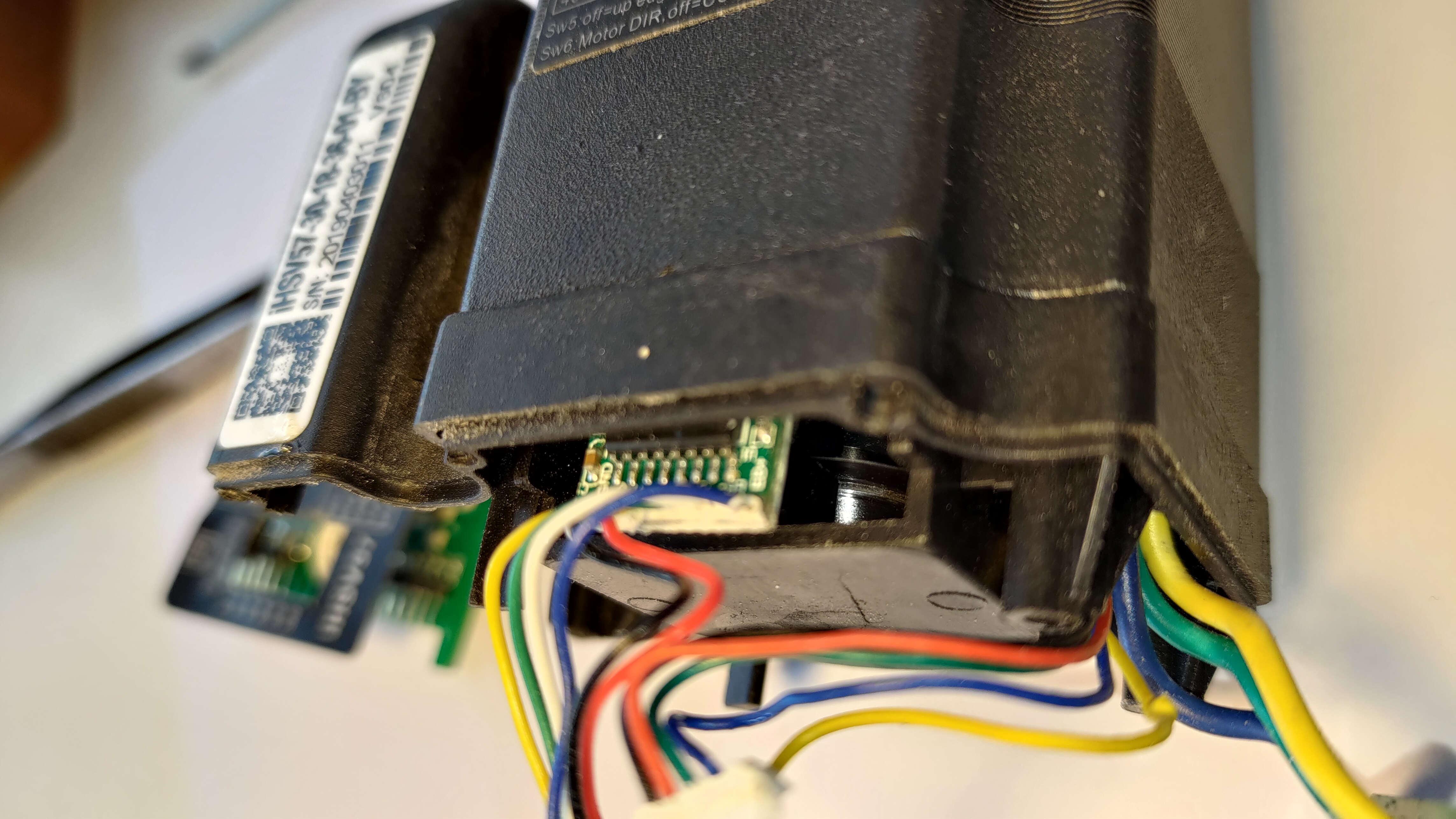 Новый вопрос - енкодер на IHSV-57. Снимал моторы с Тадам-2.5 для установки на Тадам-3. Шестерни на вал, знамо дело, на совесть сажал, хрен снимешь. А подшипники на валах китайских мотором разве что не на "скользящей посадке". Короче, вал не деформировался, но в подшипниках сдвинулся. На втором конце -енкодер. Разобрал, посмотрел - на валу сидит магнитный диск, судя по крепежу хреньки, его читающей, прошивка 5 отличается от прошивки 6 этой хренькой (видны другие крепежные отверстия). Вроде все собрал, аккуратно. Даю питание - выдает аларм. При попытке сместить вал в подшипниках - характер аларма изменился (последовательность моргания и скорость выхода в аларм чуть изменилась). Предполагаю, что дело в положении диска между считывалками.