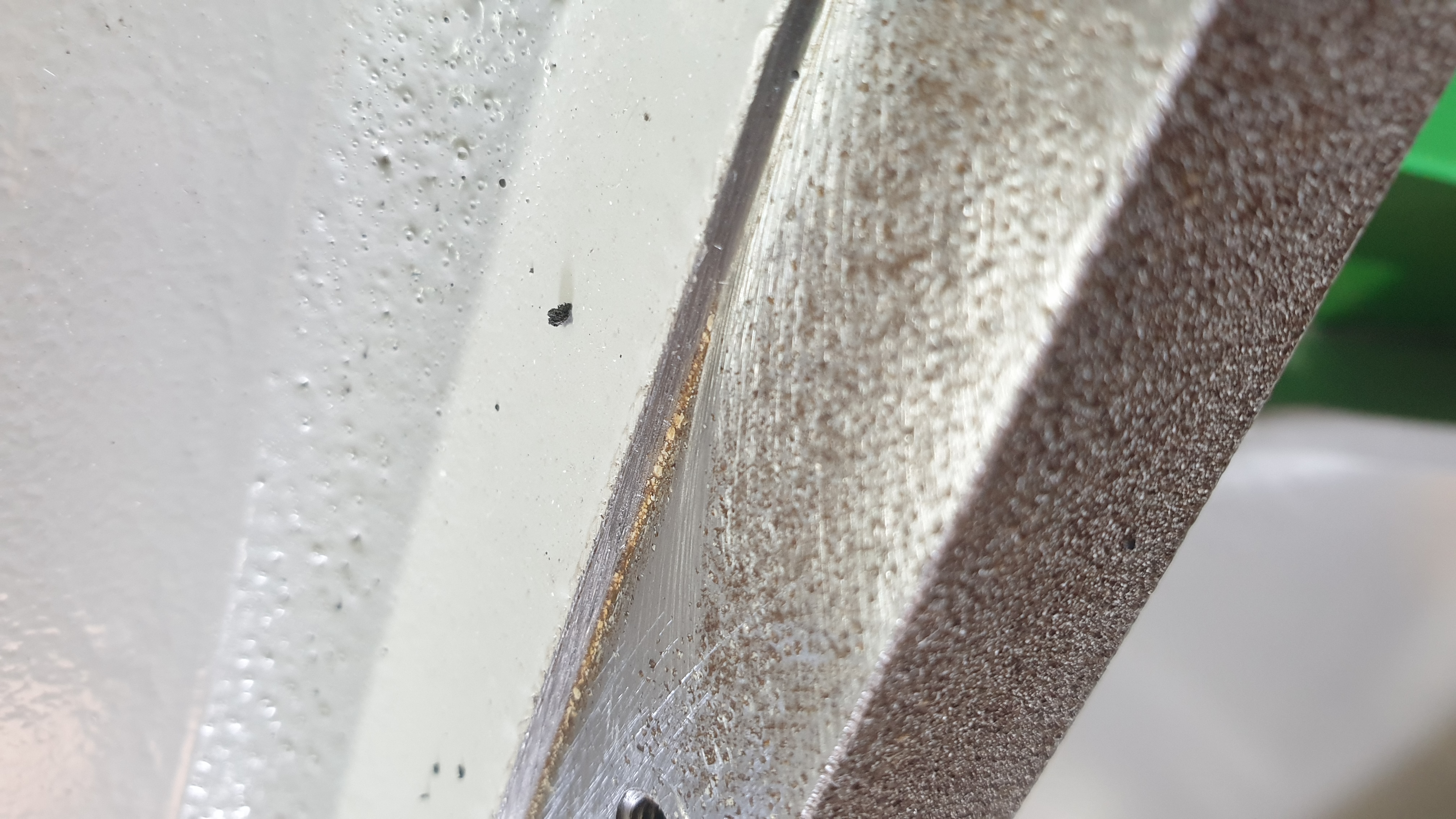 С линейкой уже лазил с поверочной)) Прямолинейность направляшек выставил по нижней фрезеровке индикатором, она была не тронута аброзивом, а вот прижатие к бортику нормального результата не давало. После того как убрал наклеп на отверстиях посадочных рельс и краску, установил направляющие на место, пробежался линейкой. Есть парочка ям в районе 5-6 соток, был разброс больше 3х десяток, направляющая буграми стояла). Думаю для него вполне нормальный результат.