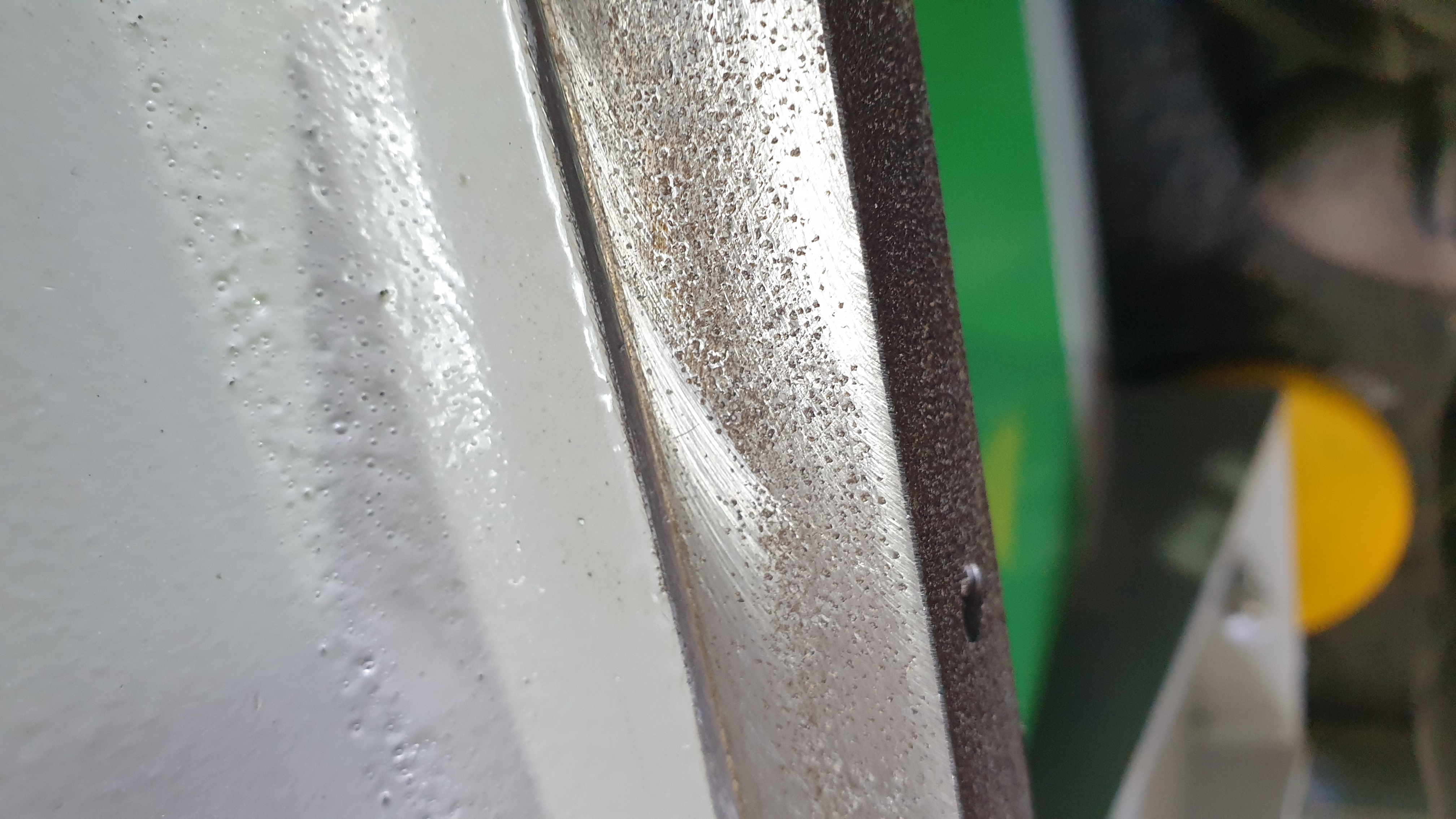 Ржавчину счищали или еще чего, похожи на следы от болгарки.. Естественно поверхность имеет ступеньки, завалы и т.д. Это уже отмытая ржавчина с этой стороны, под рельсами и рейками все ржавое было.