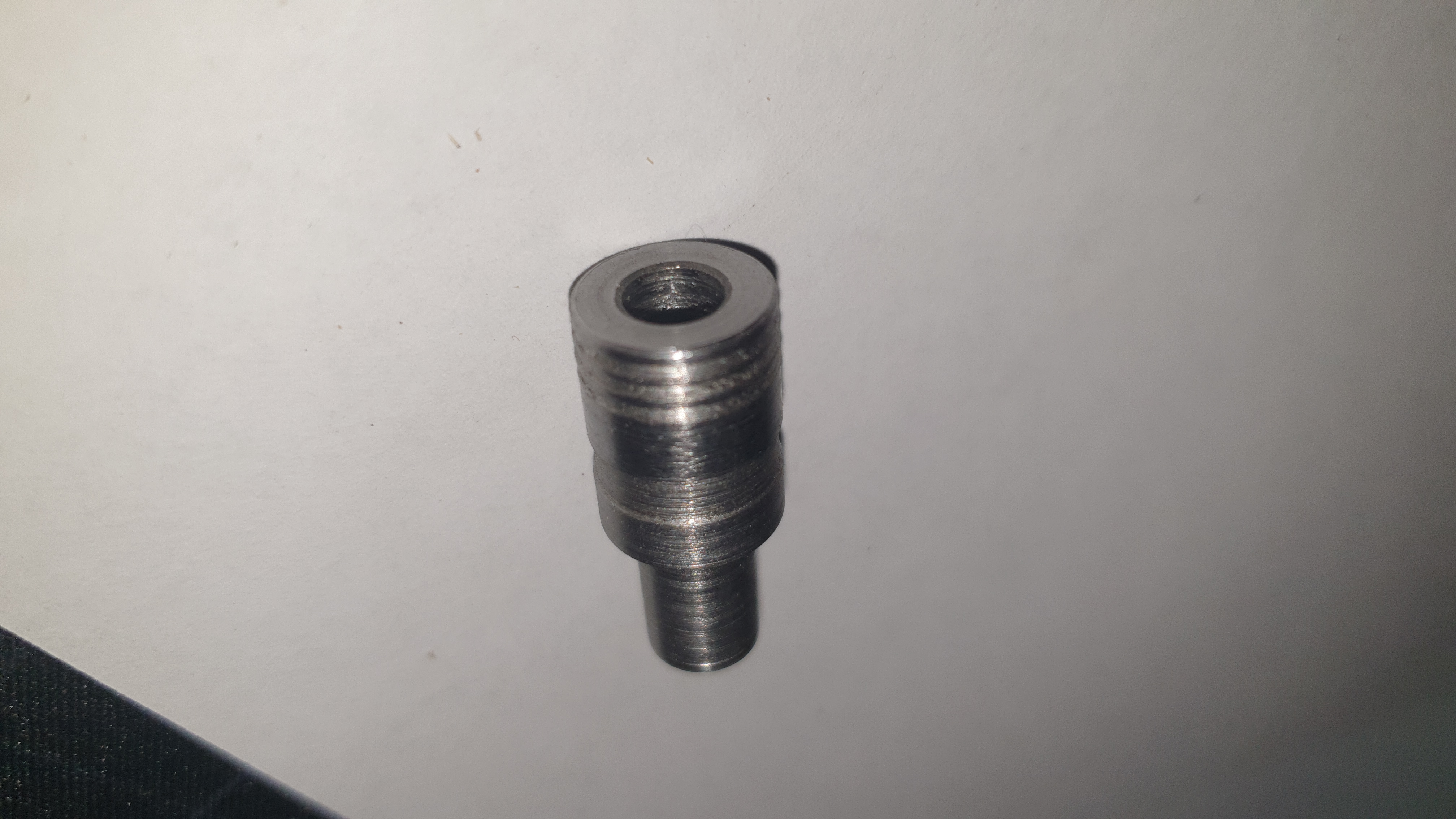 Была собрана приспособа для сверления и нарезания резбы. Купил такие сверла с центровкой. На заточном для фрез с делительной головкой обточил метчик, что бы и в дрель зажимать и вращать за что было. С его помощью можно делать заход витков на 5. И самое главное выточил такую втулку.