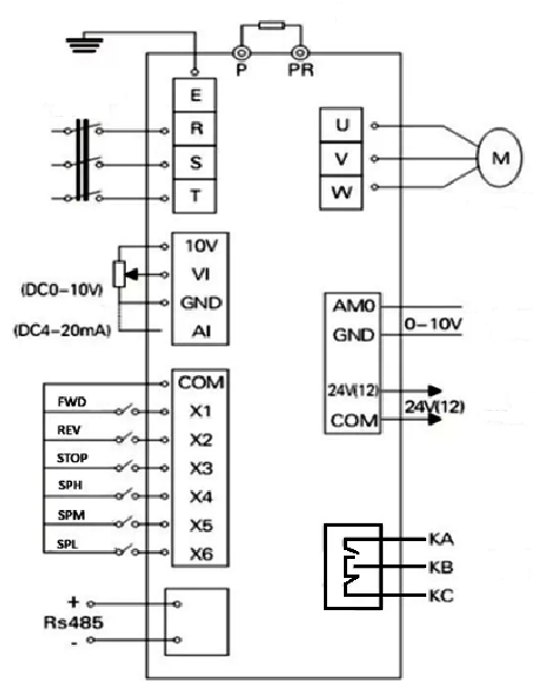 1. Три многофункциональных терминала могут быть использованы для подключения трехпроводной системы для реализации переключения вращения ВПЕРЕД / НАЗАД, которое широко применяется в случаях переключения ВПЕРЕД / НАЗАД фотоэлектрических переключателей.
