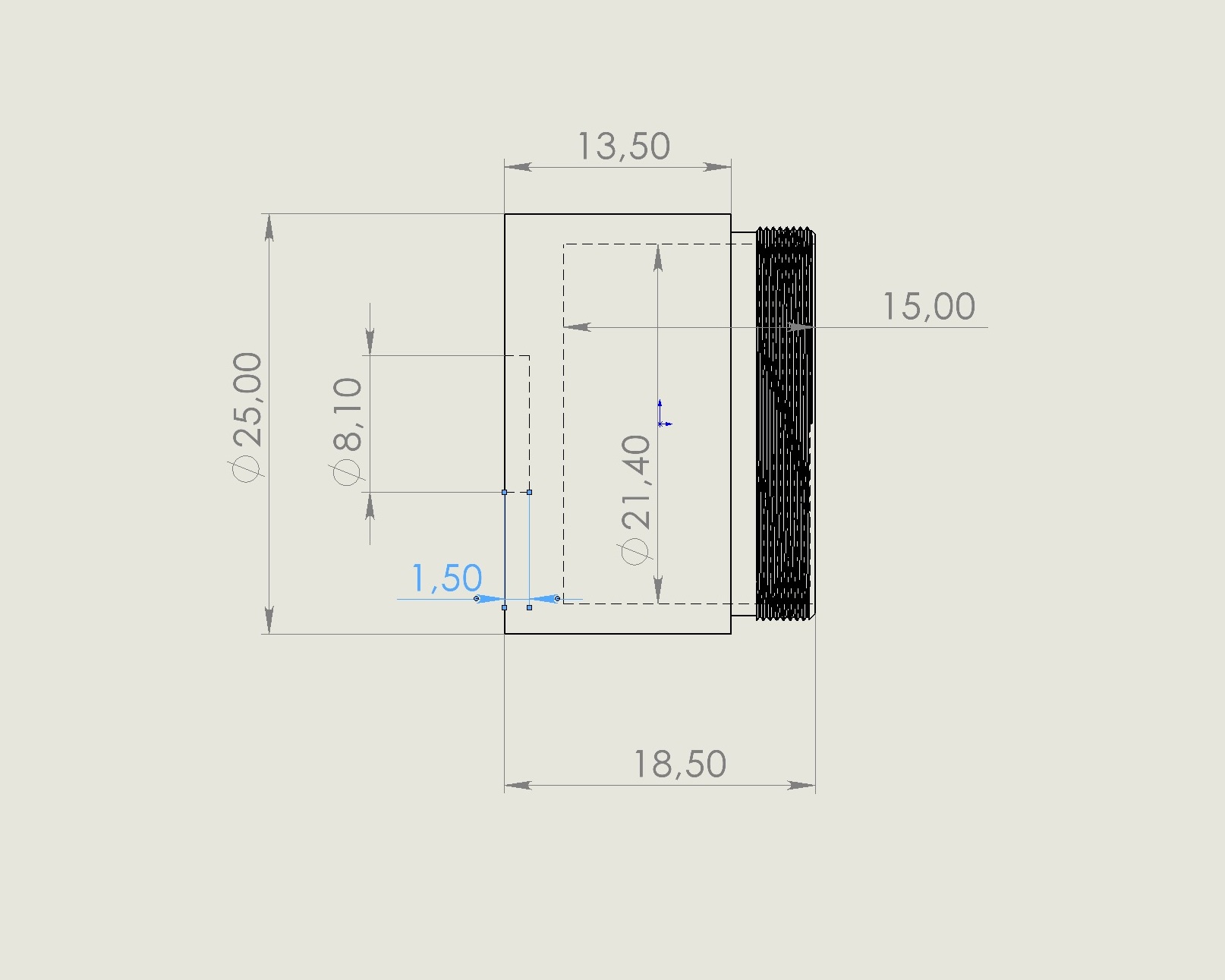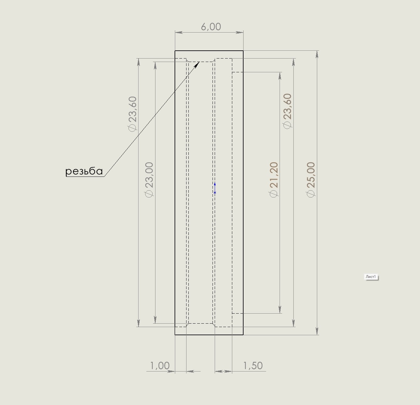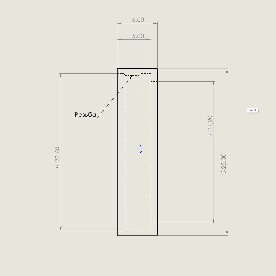 Размеры все по 14 квалитету я так понимаю раз не указана точность? Может так оказаться что верхняя деталь не будет до конца закручиваться на вторую - и там выступ с резьбой 5мм и там 5мм на вход. Выступ тогда надо бы 4.5мм.