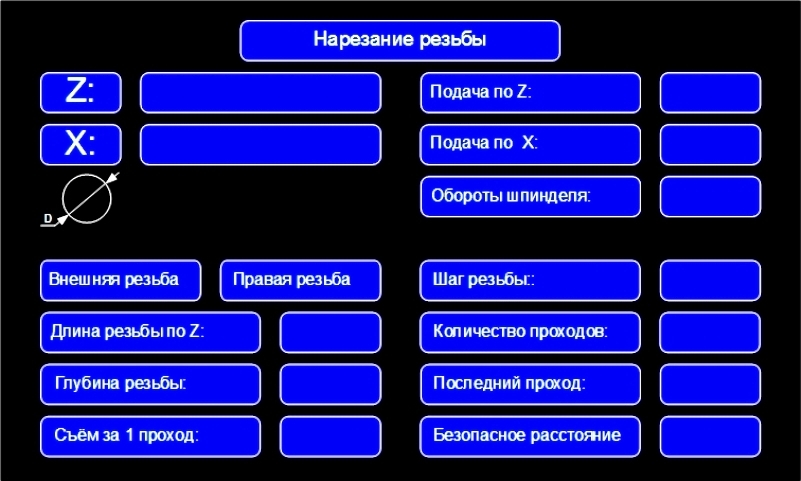 - плавная регулировка потенциометром оборотов шпинделя от 50 до 1250 об/мин. - в ручном режиме на каждой оси, кроме ручной подачи добавились 2 автоподачи (рабочая и ускоренная). - для нарезания внешней или внутренней резьбы достаточно ввести параметры: длинна, шаг, левая/правая, глубину резьбы и съём за проход. Видео работы станка: https://youtu.be/0v7iaCR0ddw