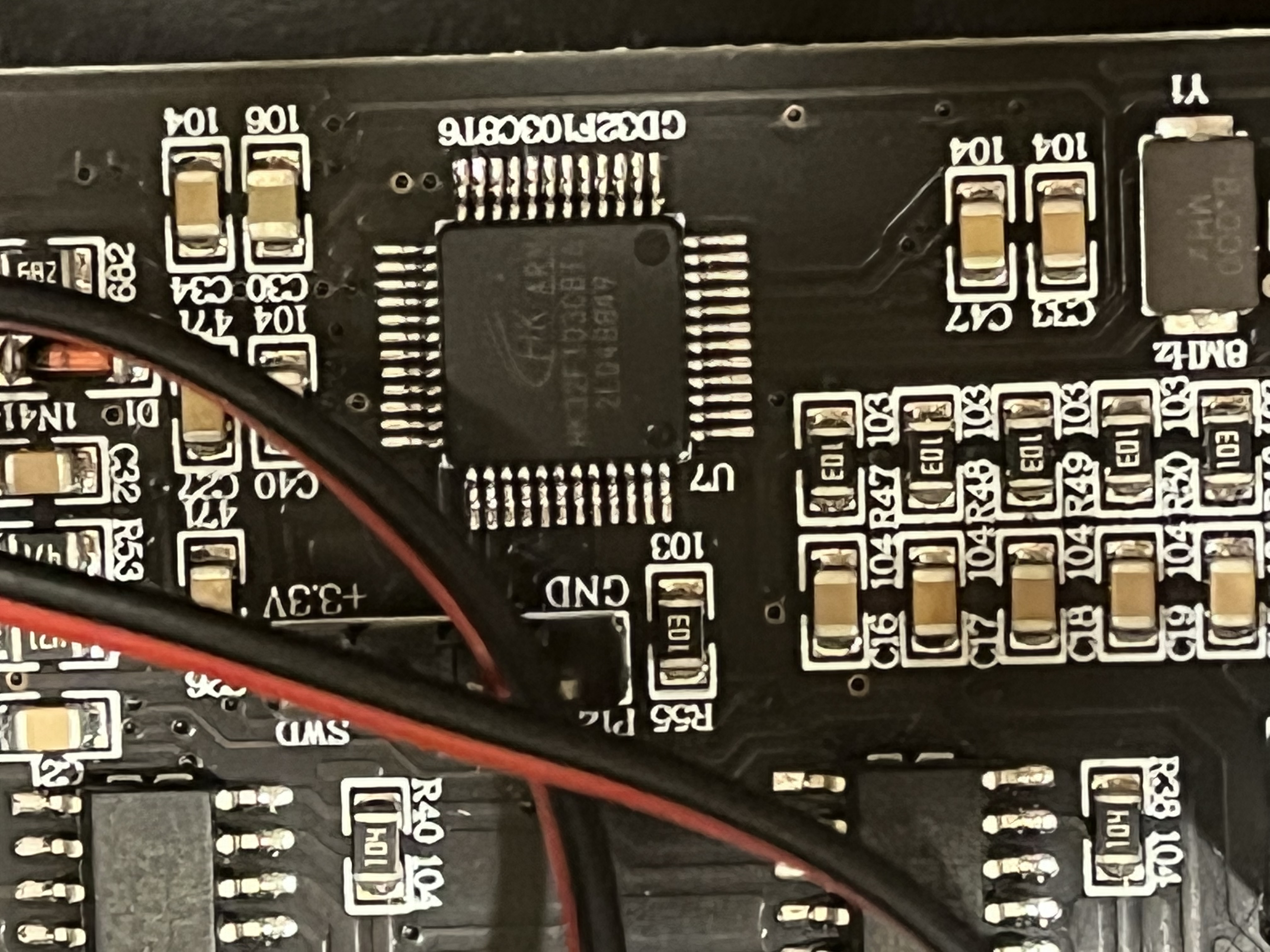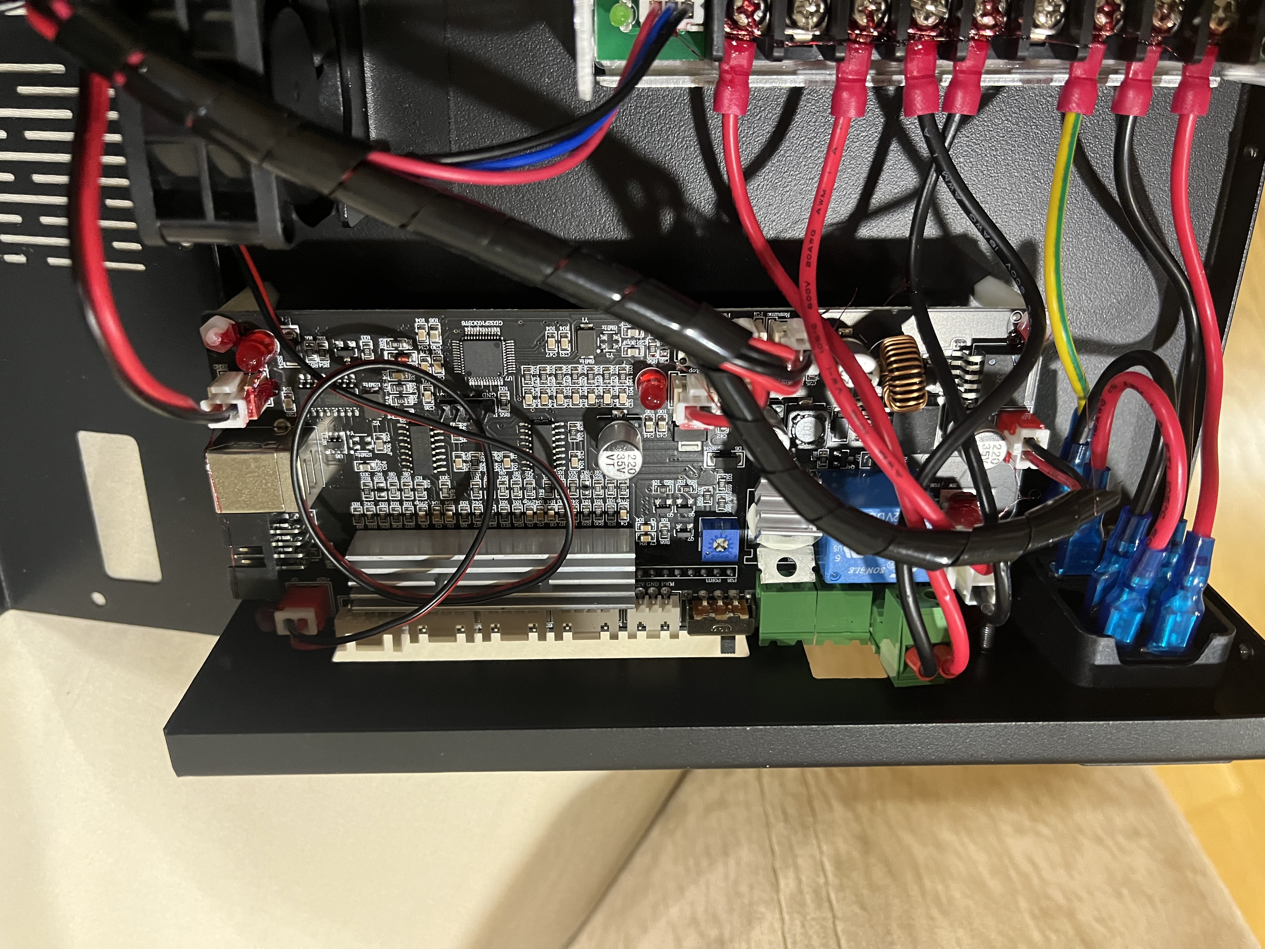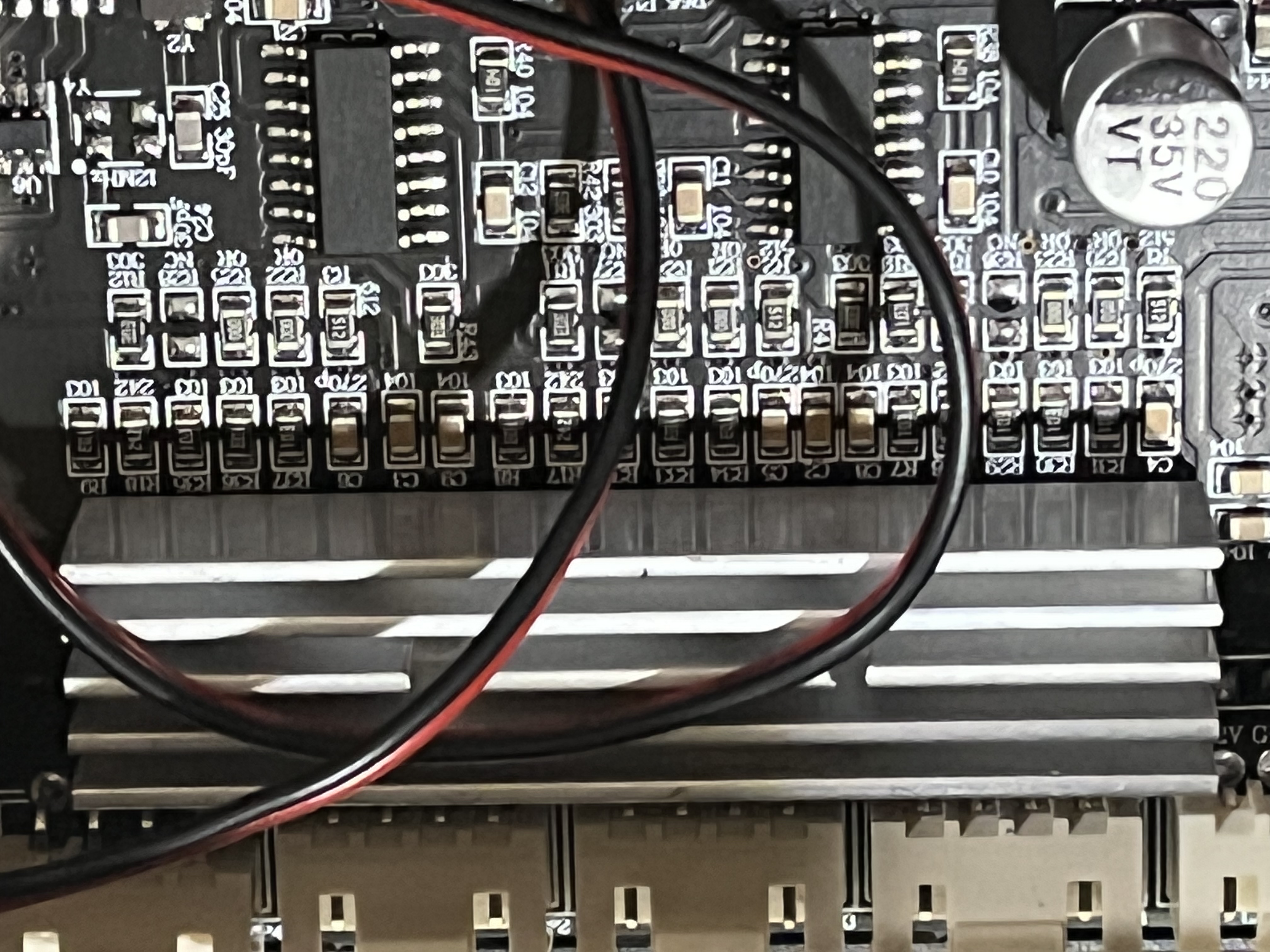 А там какая-нить маркировка на двух 16-ногих микросхемах в центре платы есть? Возможно под радиатором просто транзисторы стоят, а не полноценные драйверы. С учётом копеечной стоимости китайских микроконтроллеров, можно как-нить особо извратиться при желании. Ну или там банальные a4988 стоят с фиксированным выхлопом, например, в 1А.