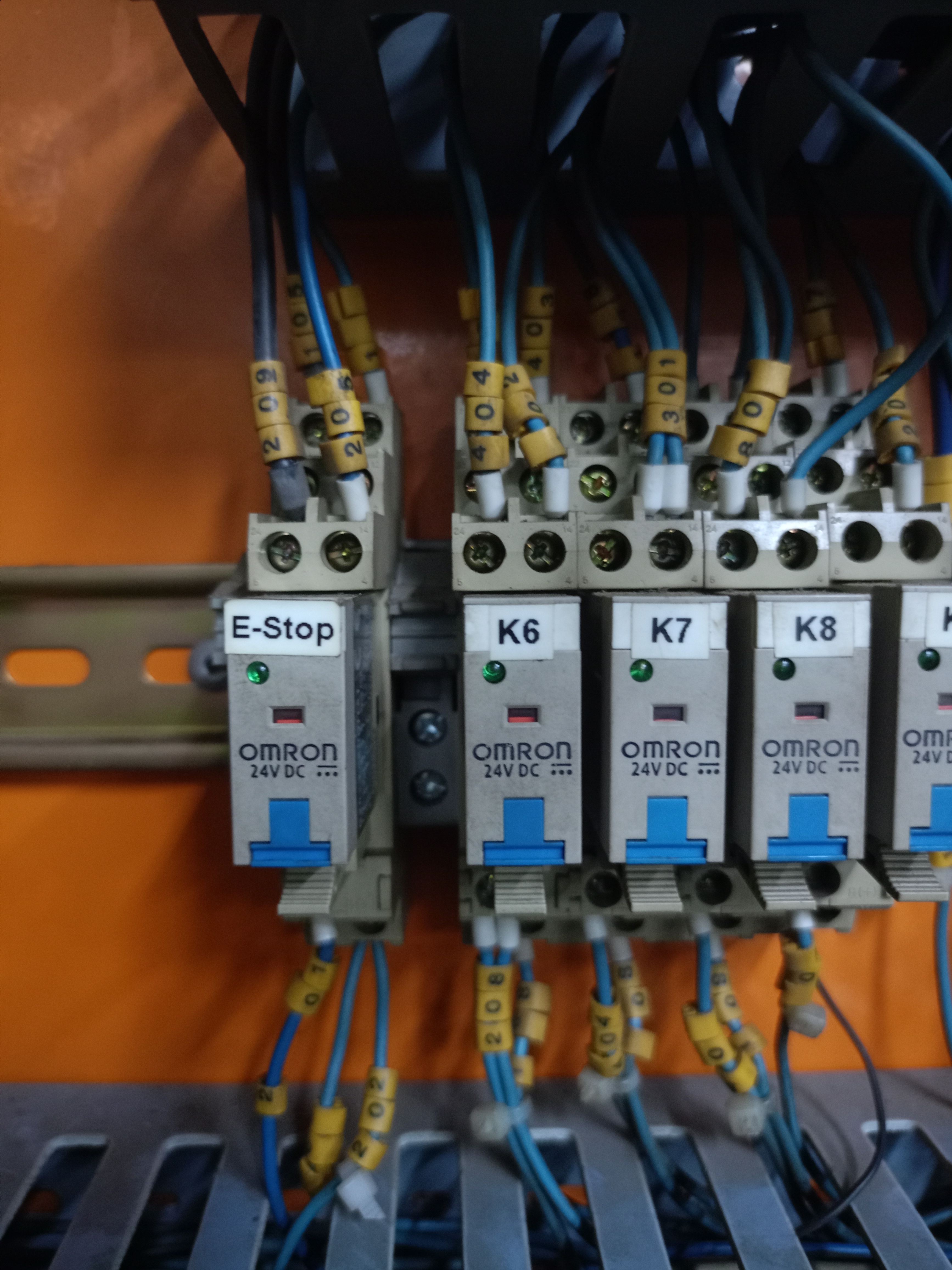 Всё цепи E-Stop прозвонил в первую очередь. На кнопку Stop реакция есть(при нажатии кнопки реле отключается) . Сигнальный + с реле E-Stop на контроллер приходит.