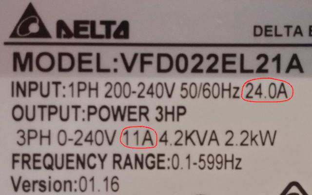 Такой вопрос. Собираюсь подключать частотник Delta VFD022EL21A (2.2кВт, 1 фаза, 220В, 24А).