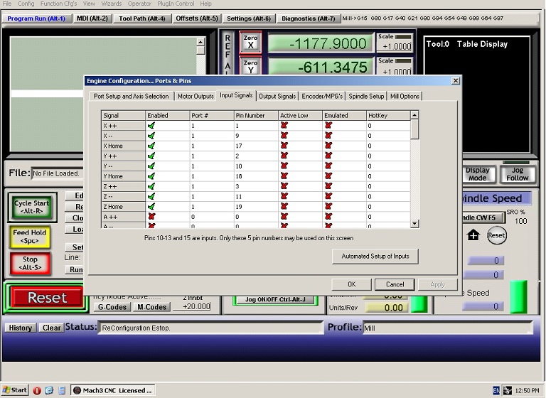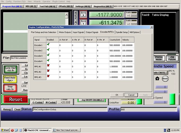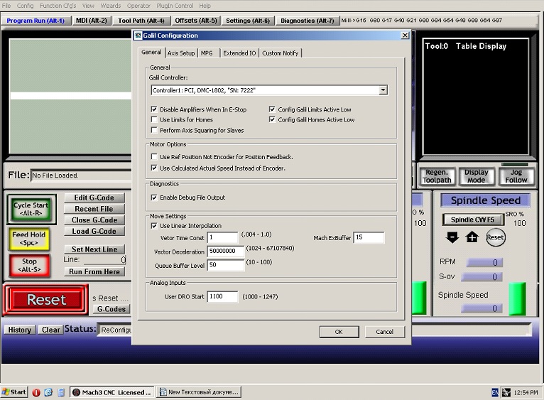 Заменил комп, поставил ХР+ Мач3, закинул плагин для платы управления. (Сделал много скринов, но они как всегда остались на станочном компе).