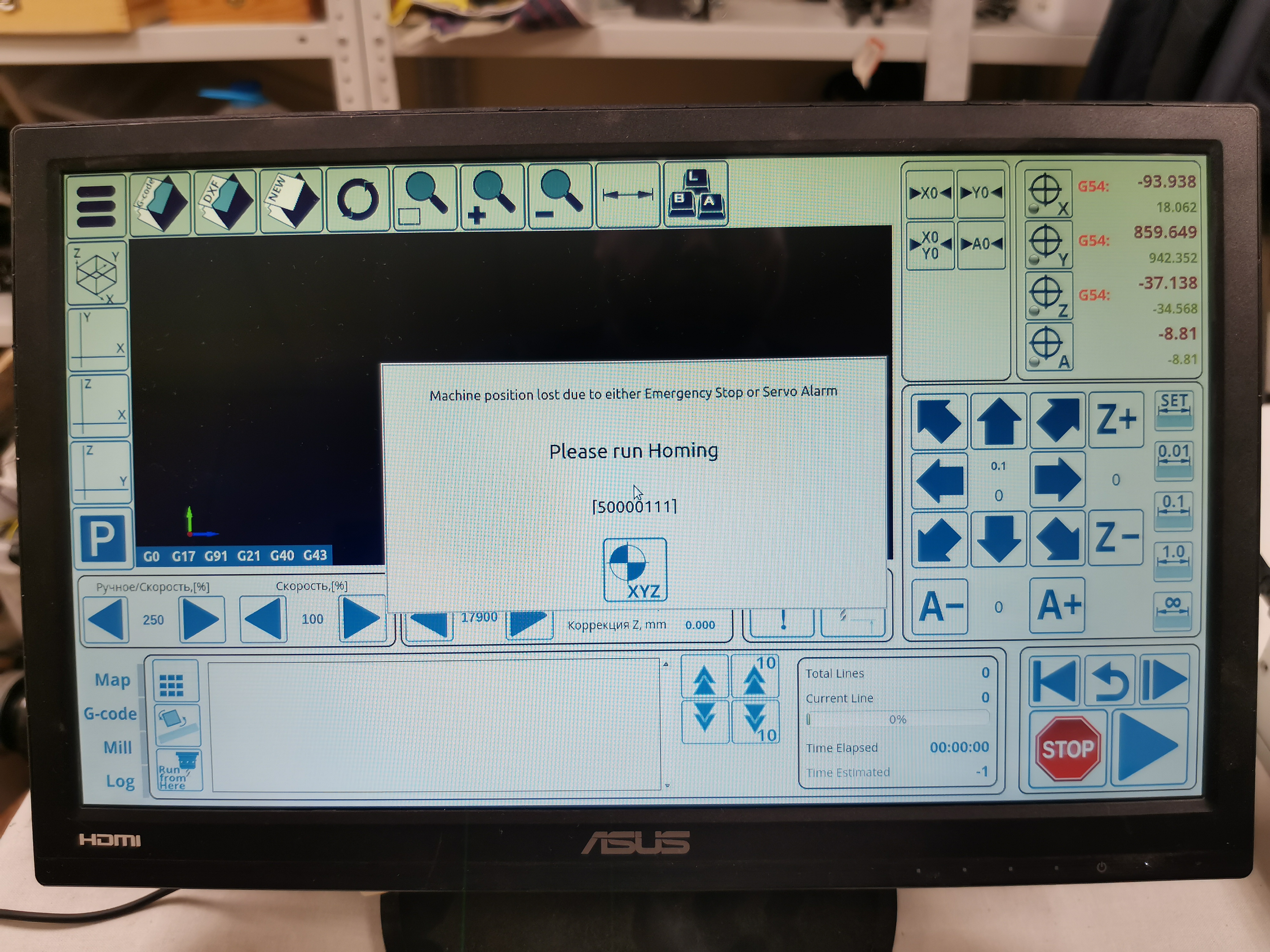 всё управление станком осуществляется с экрана, ну мышку тоже никто не отменял, компьютер с установленной системой и блоком питания.