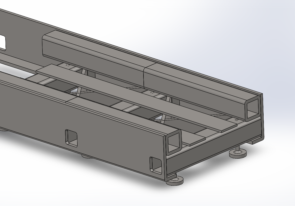 Две верхние балки шлифованные с верху и с низу. Они используются для установки рельс 25 размера и косозубой рейки 24мм.